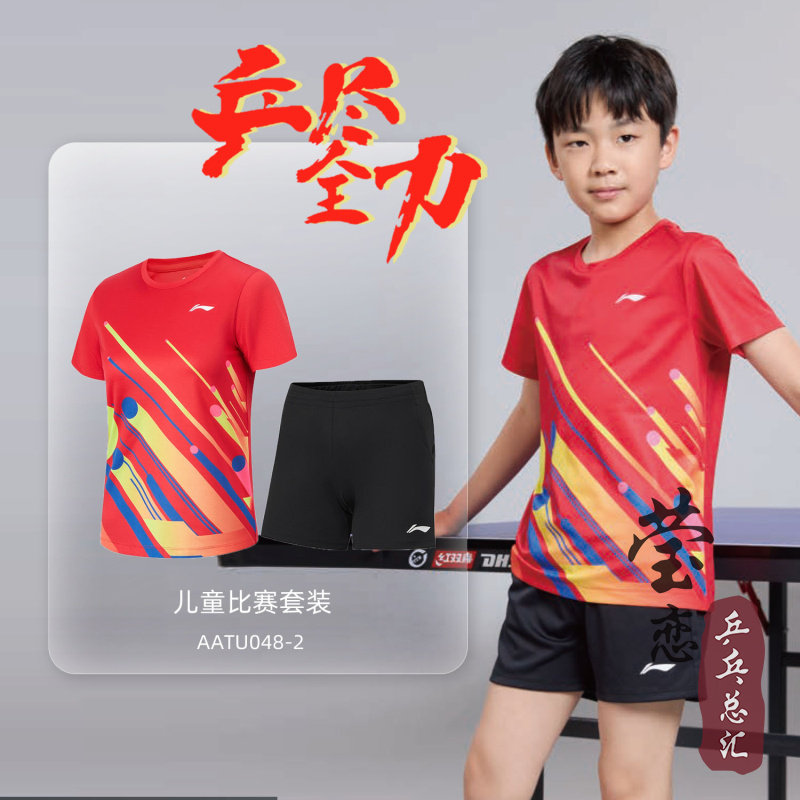 莹恋李宁儿童乒乓球服装套装男童女运动服训练服速干短袖球衣短裤