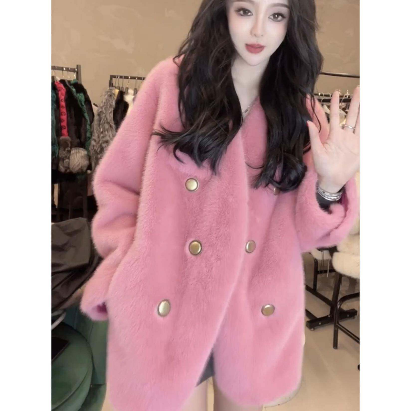香港秋冬新款高级感粉色加厚皮草外套女小香风时尚洋气休闲大衣潮