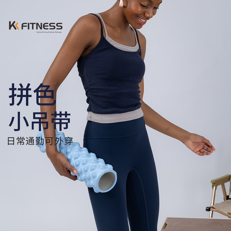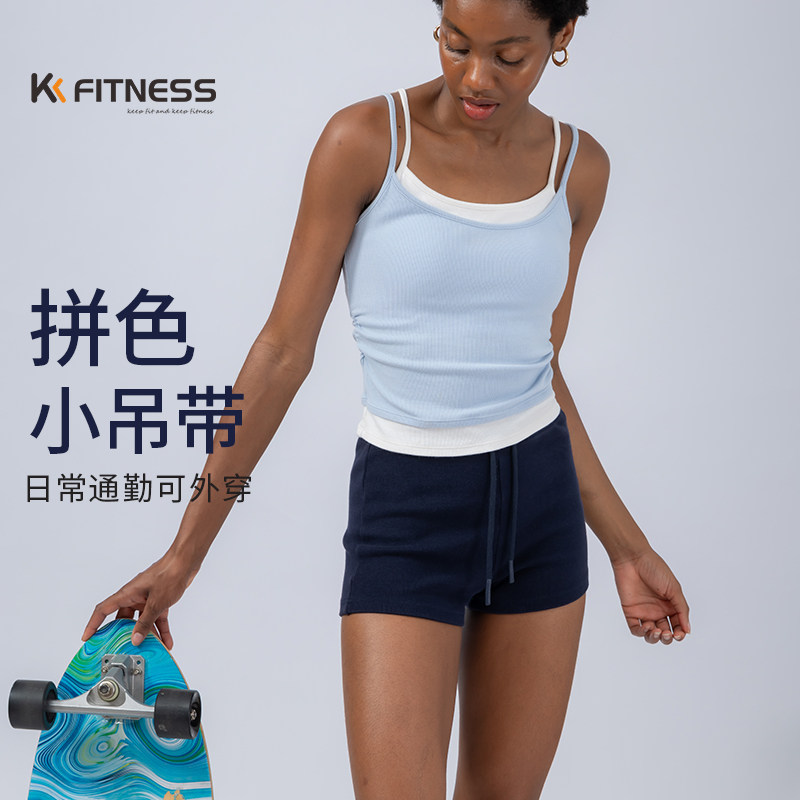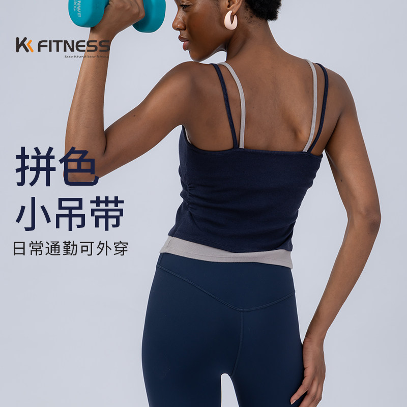 kk fitness假两件拼色吊带瑜伽背心女外穿带胸垫普拉提健身上衣