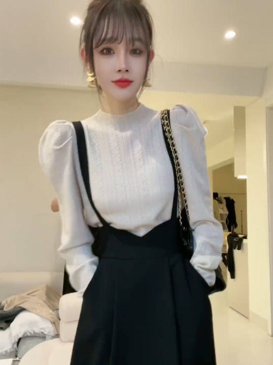 春季法式长裙女装高级感穿搭小个子小香风黑色背带连衣裙子两件套