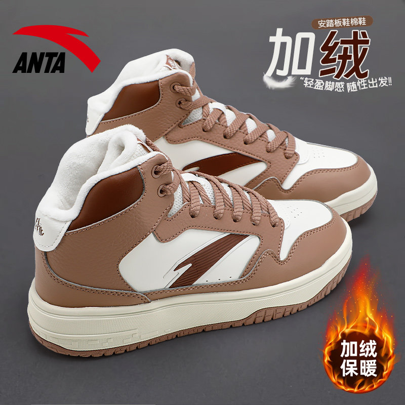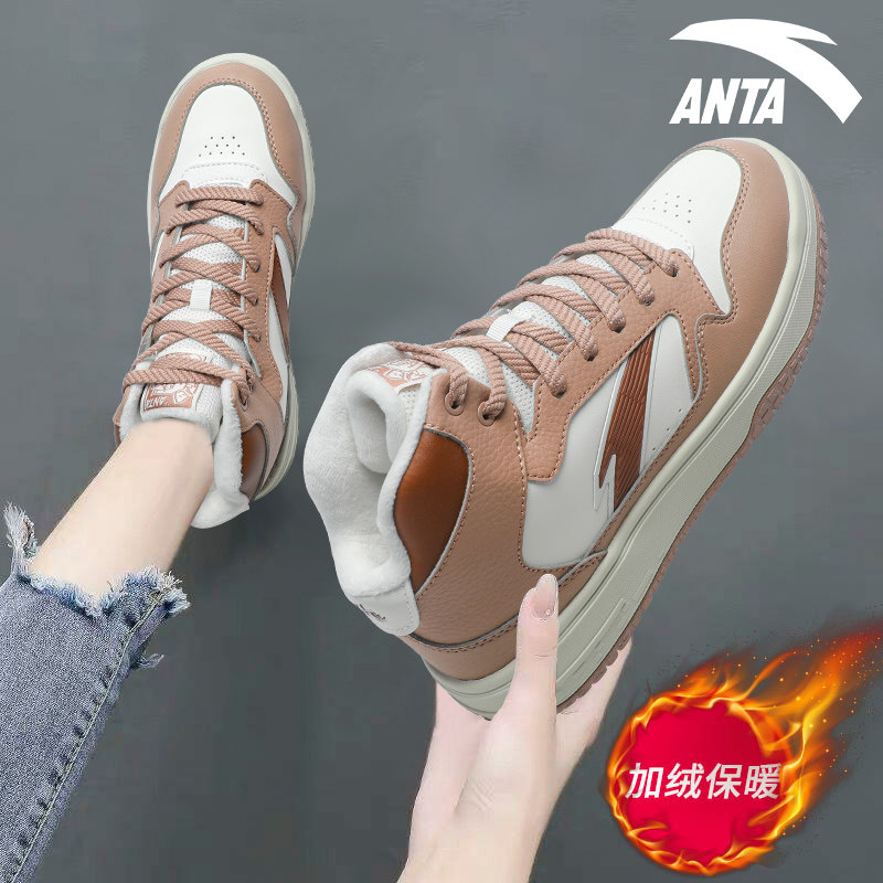 安踏加绒高帮女鞋板鞋休闲二棉鞋保暖冬季革面防泼水防滑运动鞋子