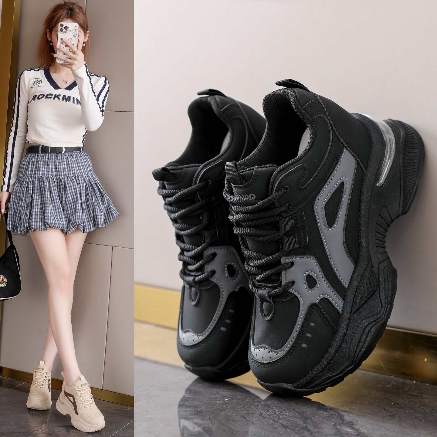 踩屎感老爹鞋女款2025新款小个子内增高运动鞋百搭显脚小厚底女鞋