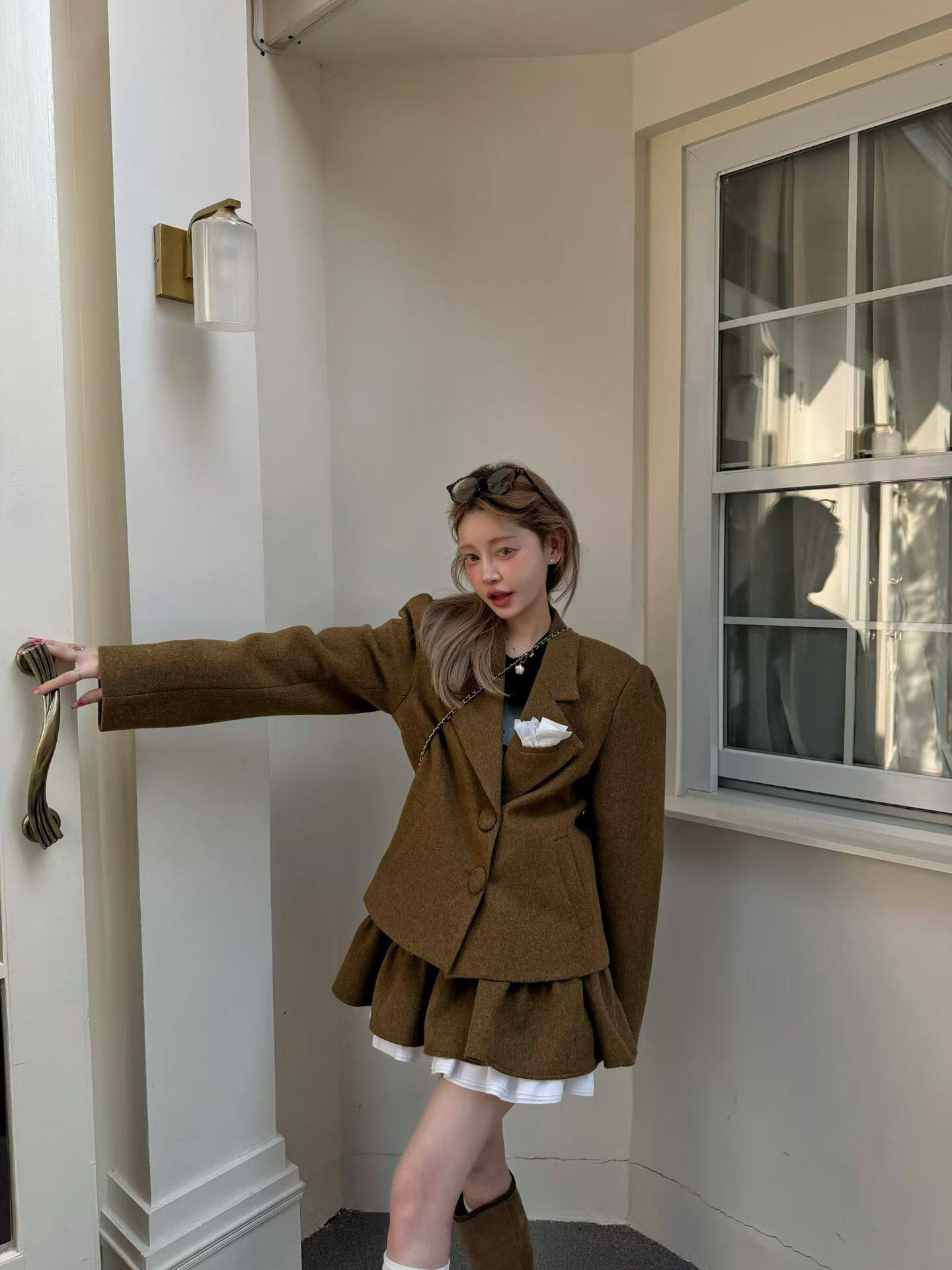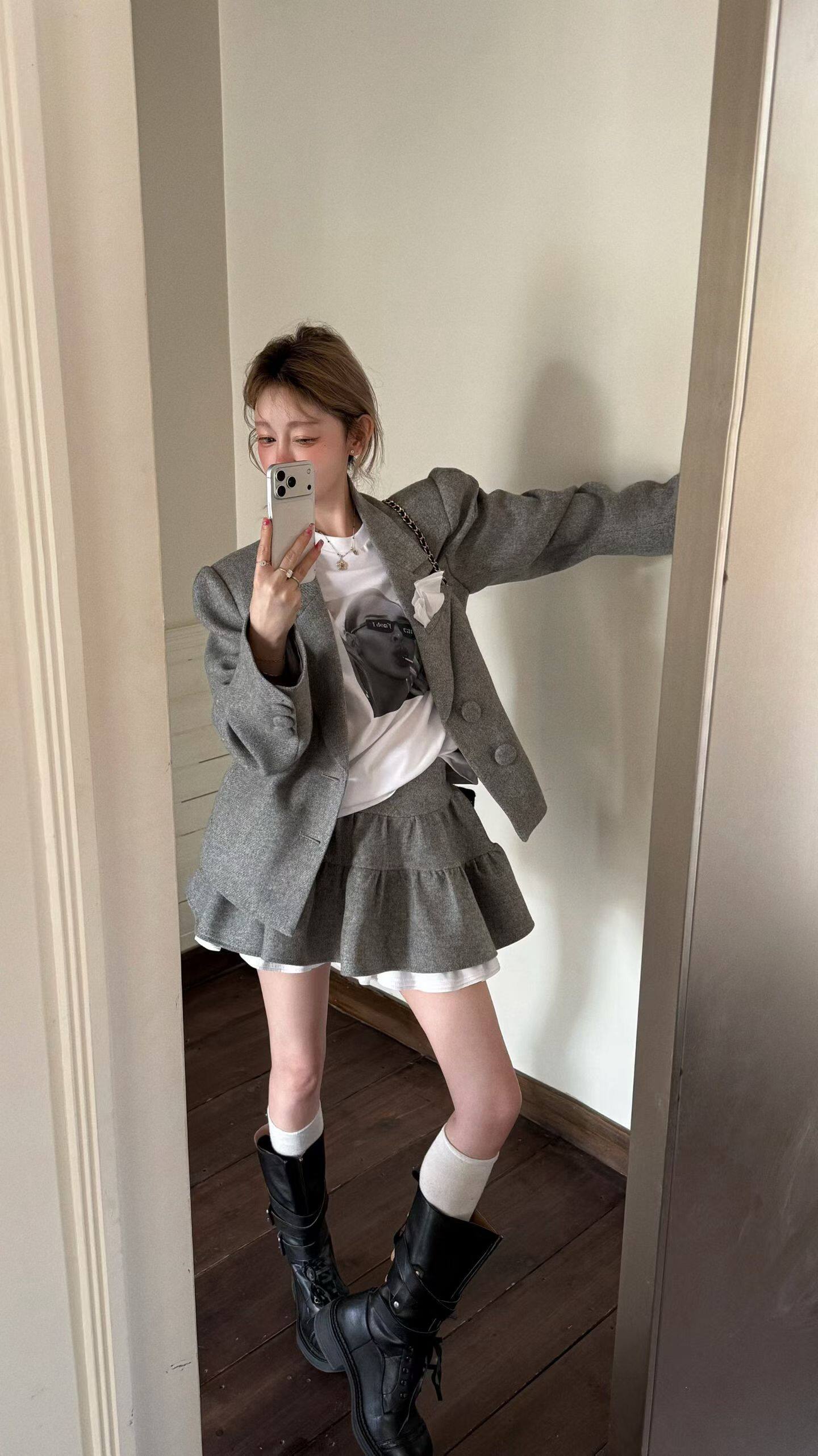 GOD财神2026早春新款复古小香风翻领西装外套女+百褶裙学院风套装
