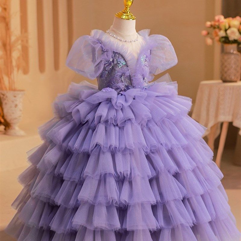 女童礼服轻奢小众高端宴会钢琴比赛演出服儿童生日连衣裙紫公主裙