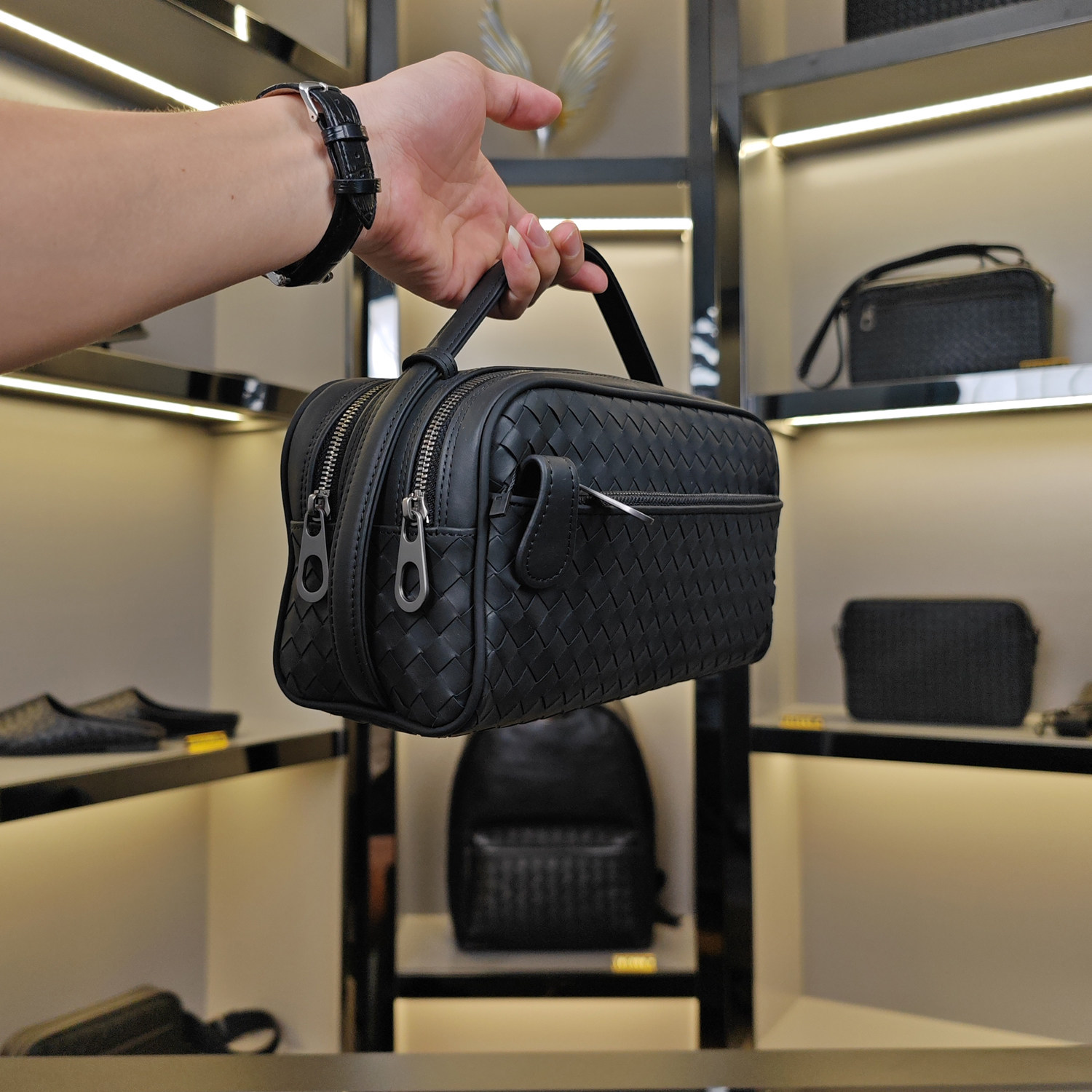 311线报网描述:选用胎牛皮手工编织 双拉链设计 天猫老店
