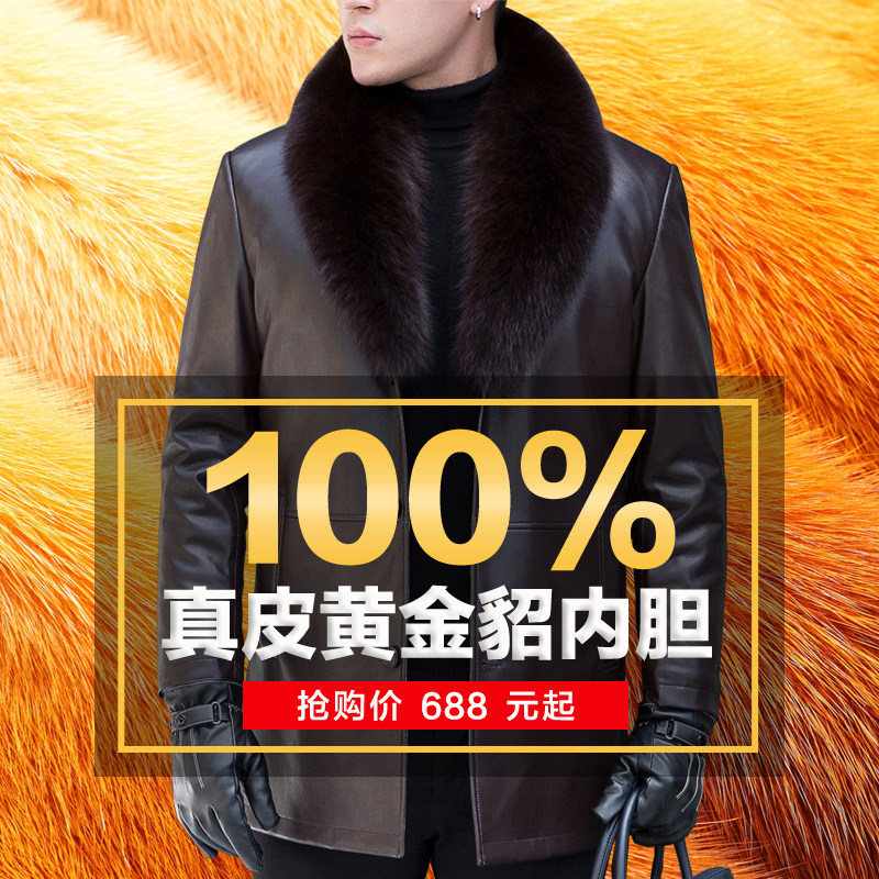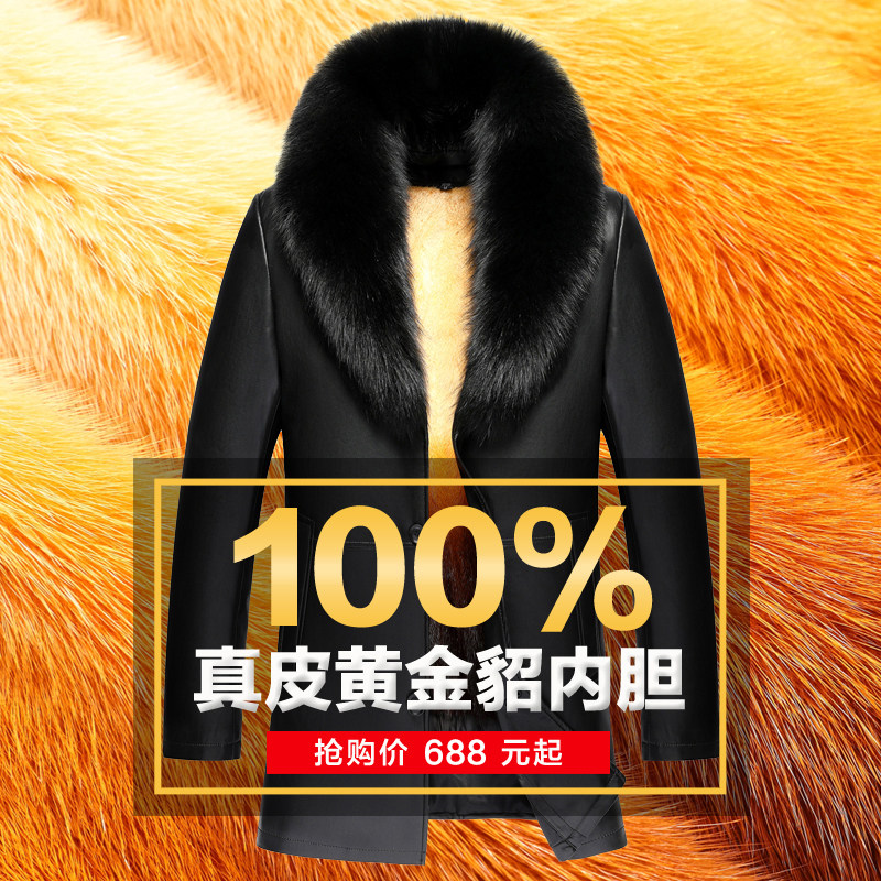 冬季海宁中老年真皮皮衣男爸爸装中长款绵羊皮貂内胆皮草大衣外套