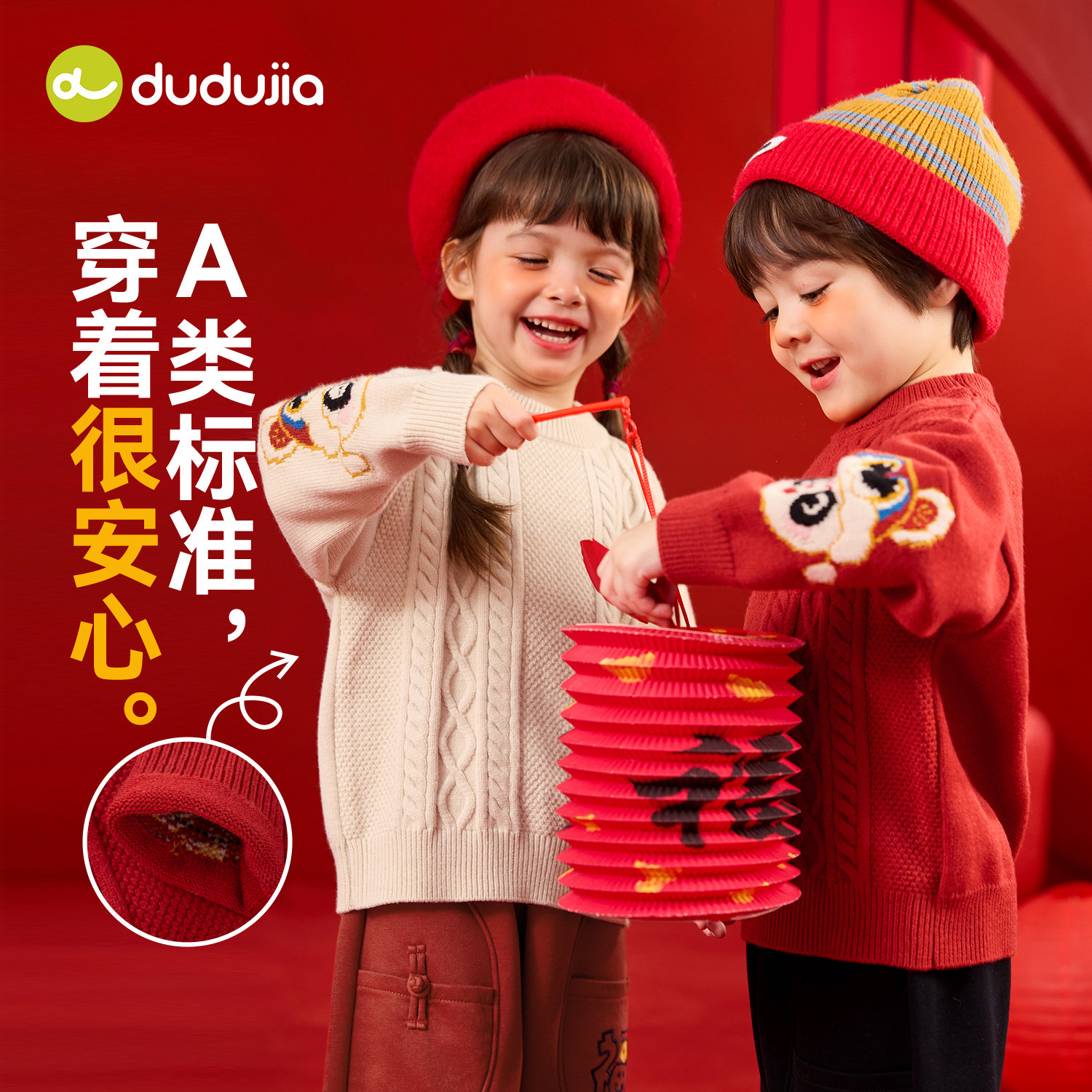 [亲子装]dudujia男童年服儿童拜年服女童毛衣洋气女宝年衣红色冬a