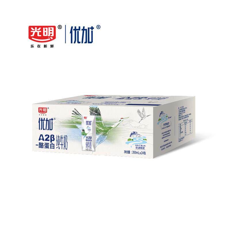 光明优加A2-酪蛋白纯牛奶200ml*24盒整箱送礼