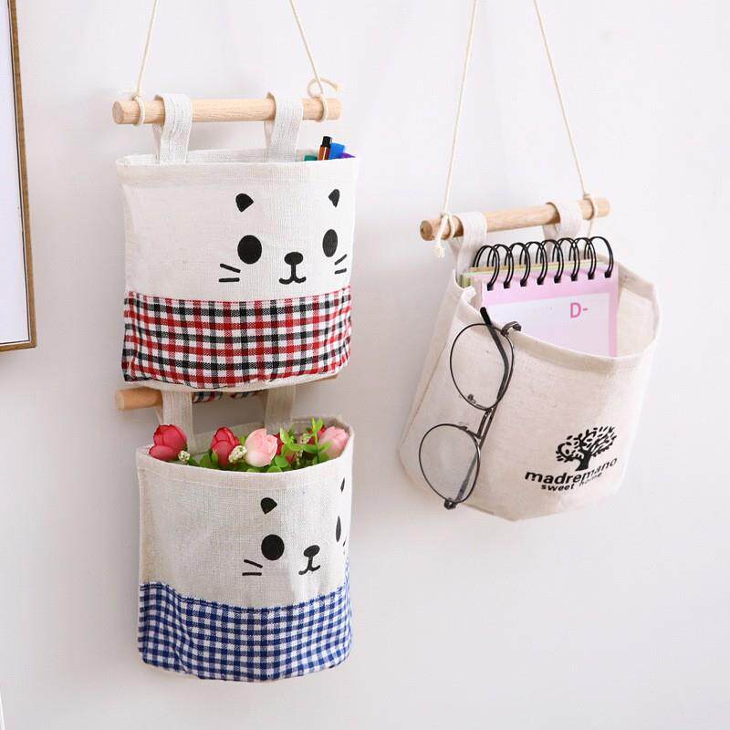 小号龙猫棉麻单兜收纳挂袋兜墙挂式收纳袋衣柜门后布艺杂物储物袋