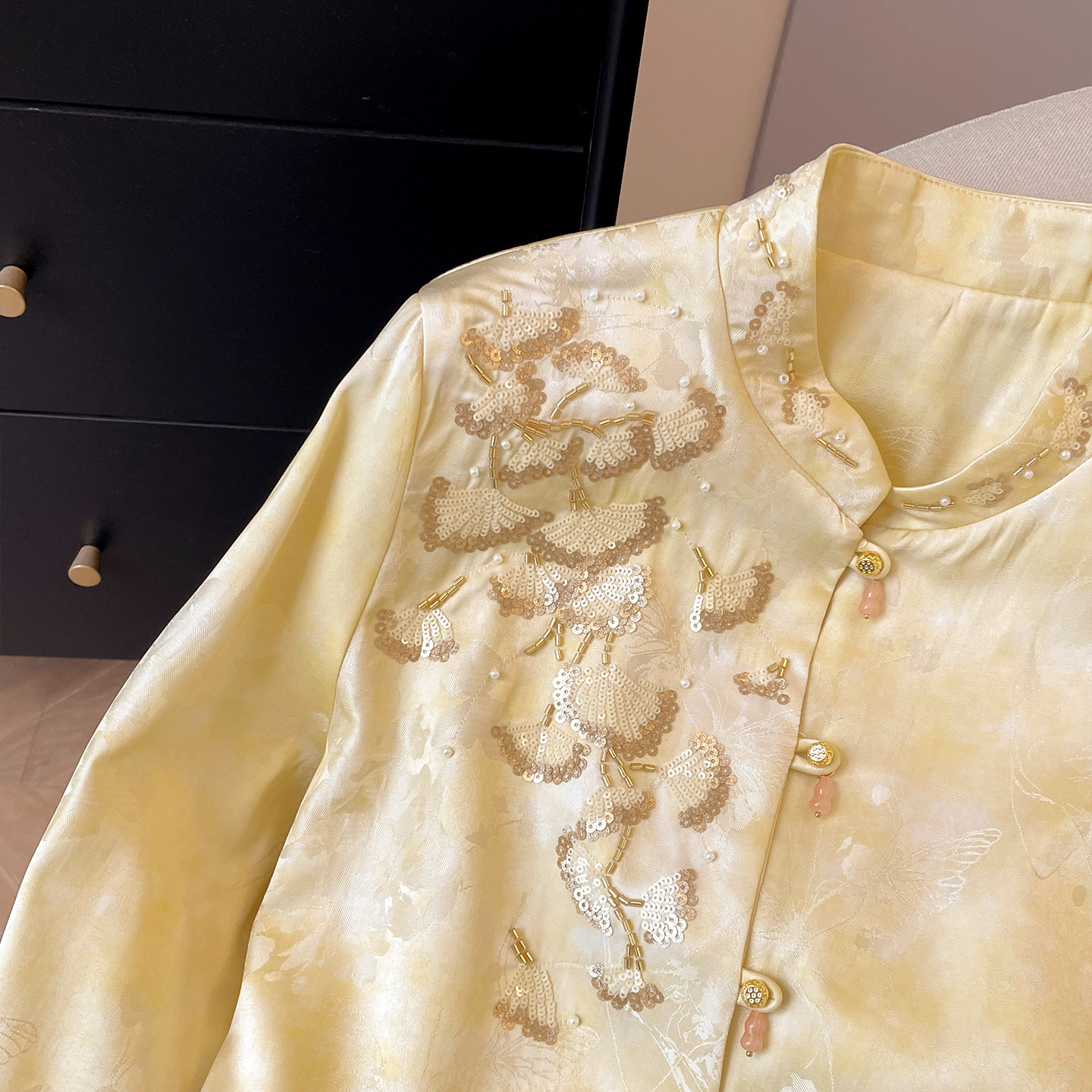 小C家 新中式女装2026新款春国风刺绣上衣轻奢高级感提花盘扣外套