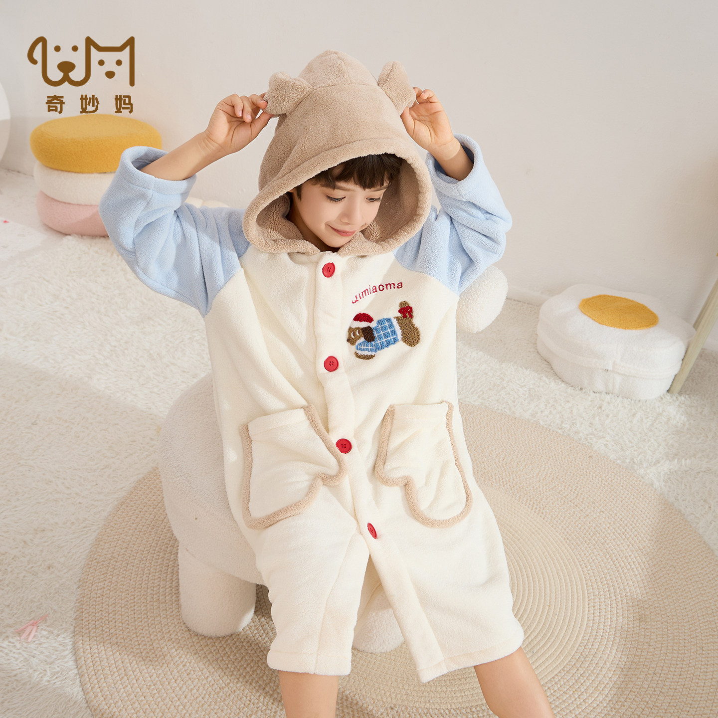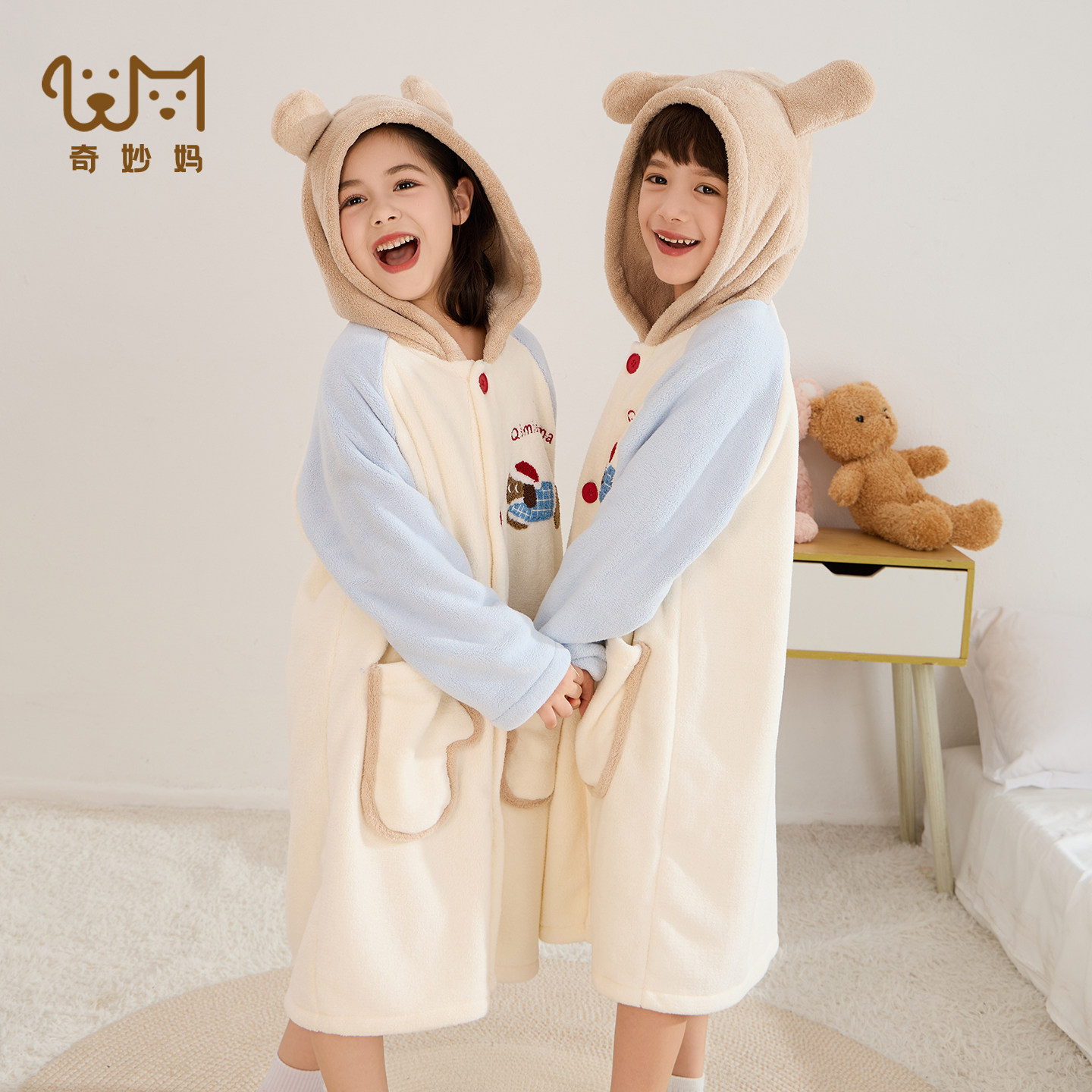 可爱卡通儿童珊瑚绒睡衣女童加绒加厚家居服大码睡袍冬季家居服