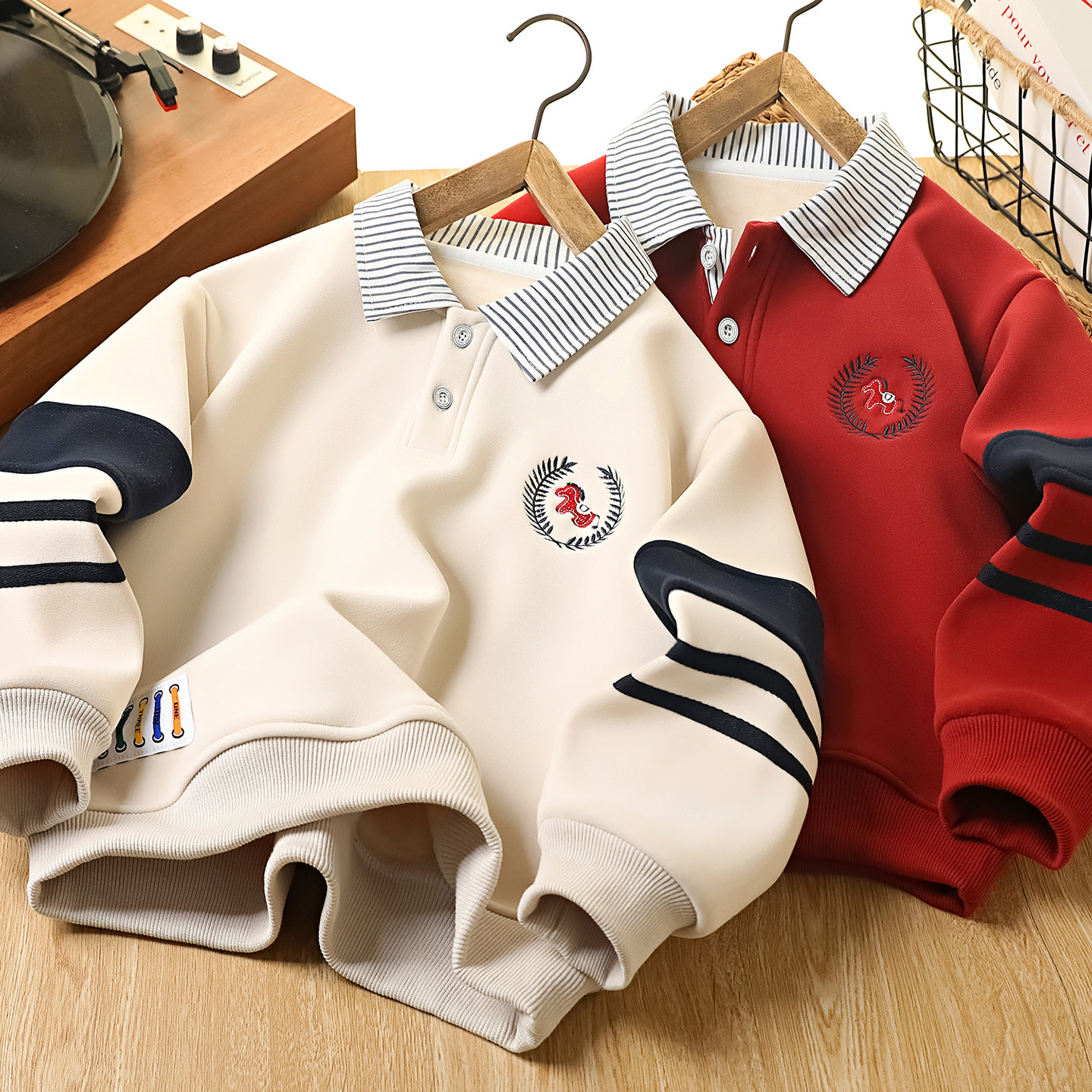 男童加绒polo衫卫衣冬装本命年2026新款儿童红色拜年服中大童上衣