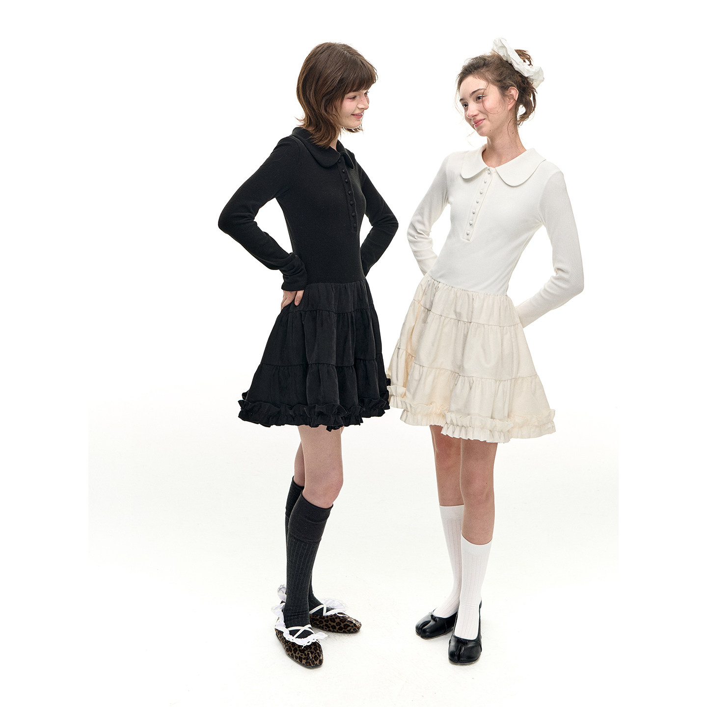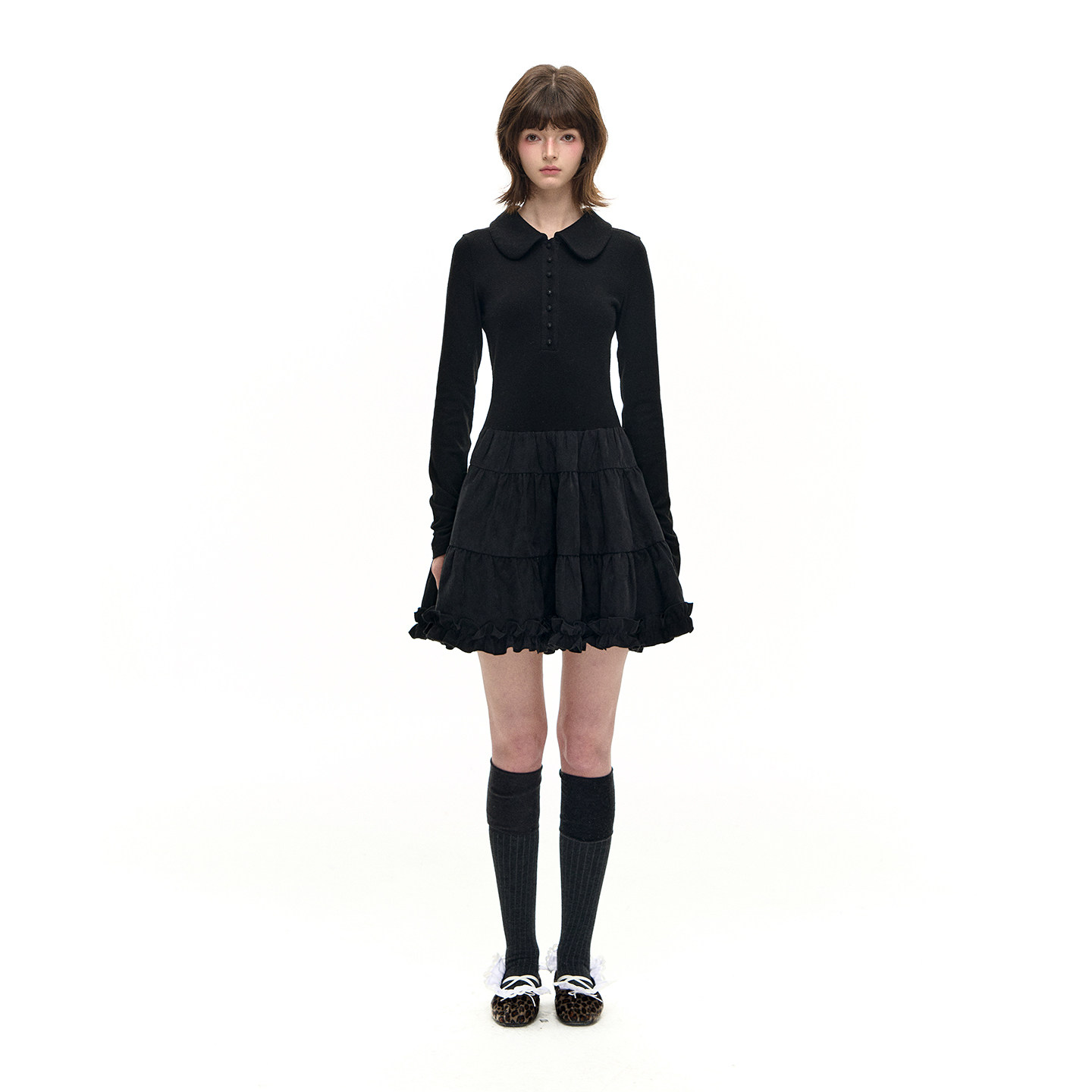 Romance Nanci 黑白色蓬蓬polo针织连衣裙秋冬打底内搭裙