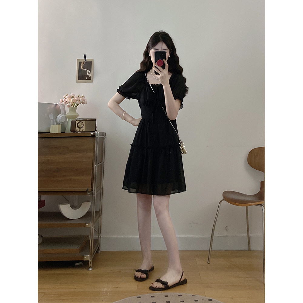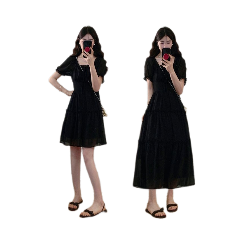 大码女装夏季法式连衣裙胖MM气质小众巨好看收腰长短款裙子