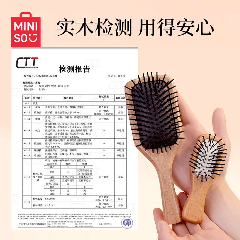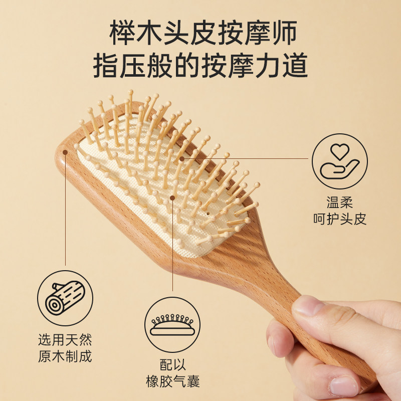MINISO名创优品梳子木梳气垫梳迷你便携小随身榉木气囊梳按摩蓬松