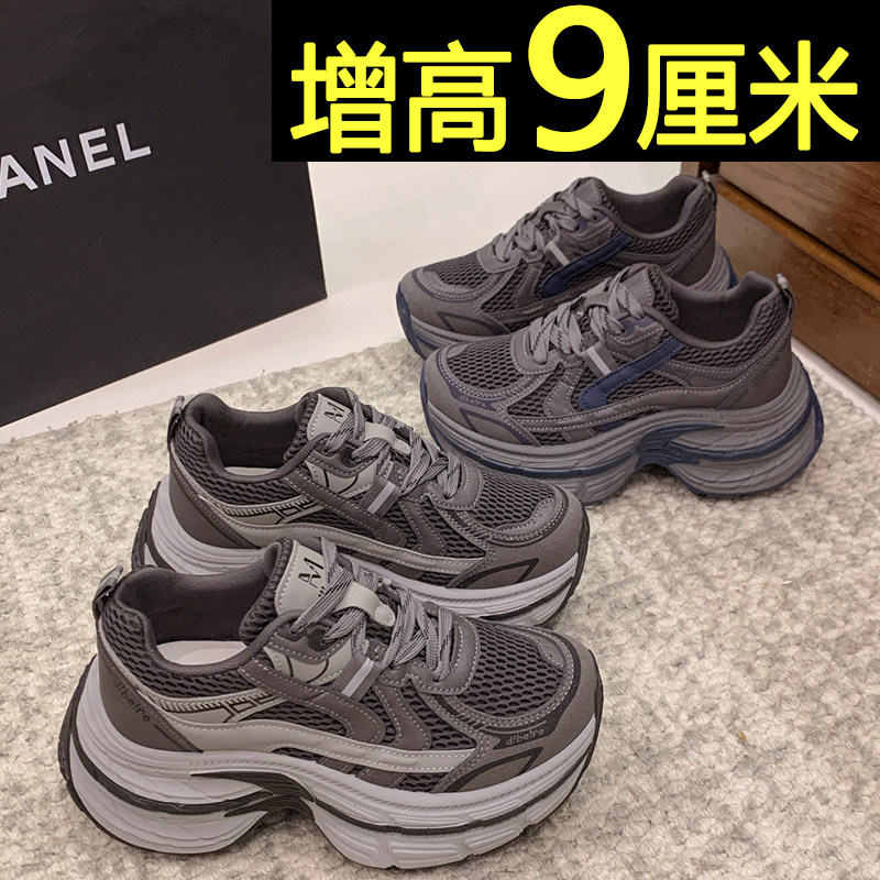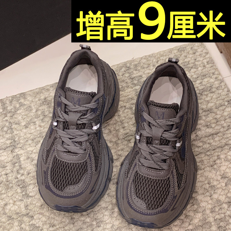 灰色厚底老爹鞋女款2026新款春季超火内增高休闲鞋百搭轻便运动鞋