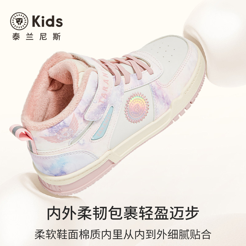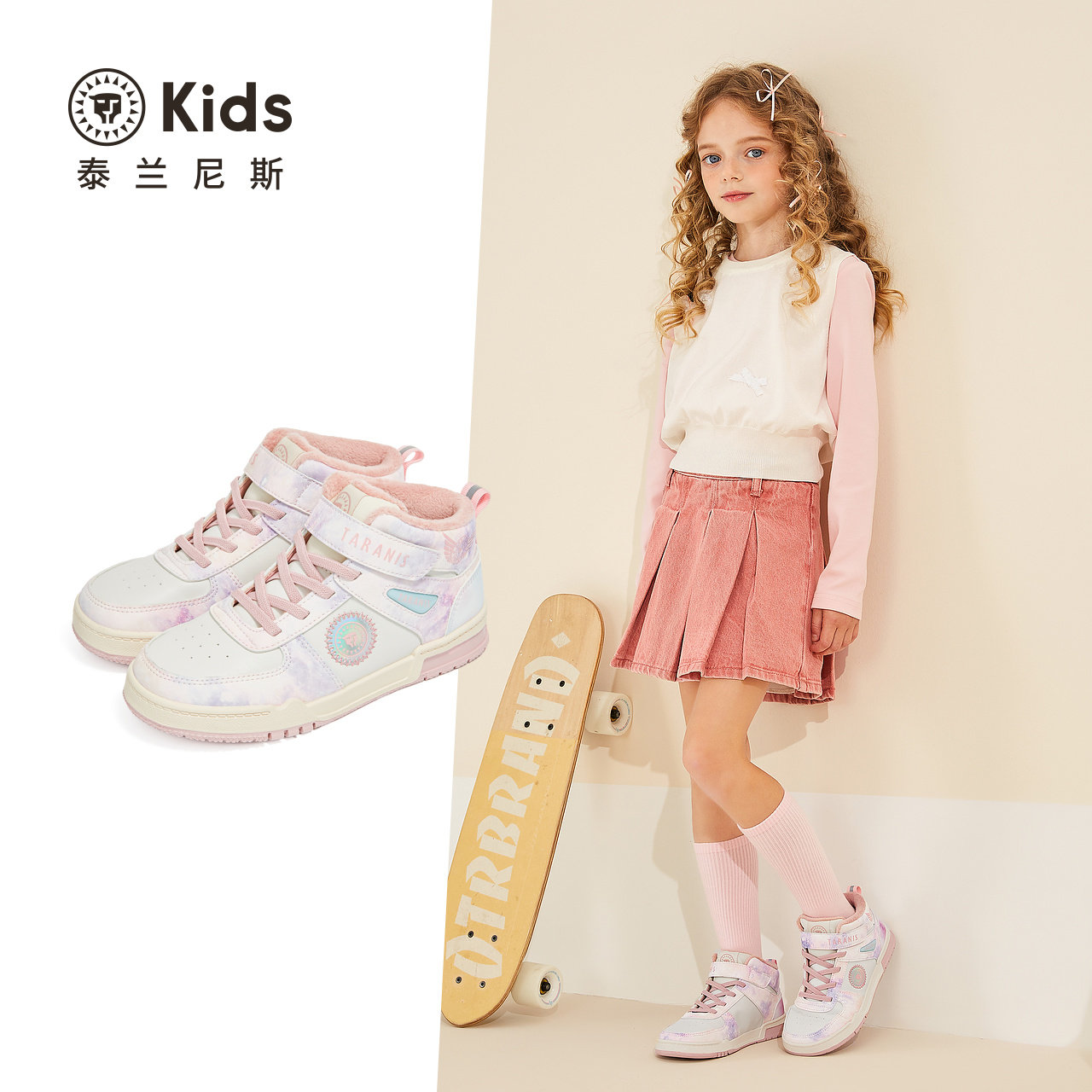 泰兰尼斯kids冬季新款加绒板鞋女童甜心运动滑板鞋防滑软底休闲鞋