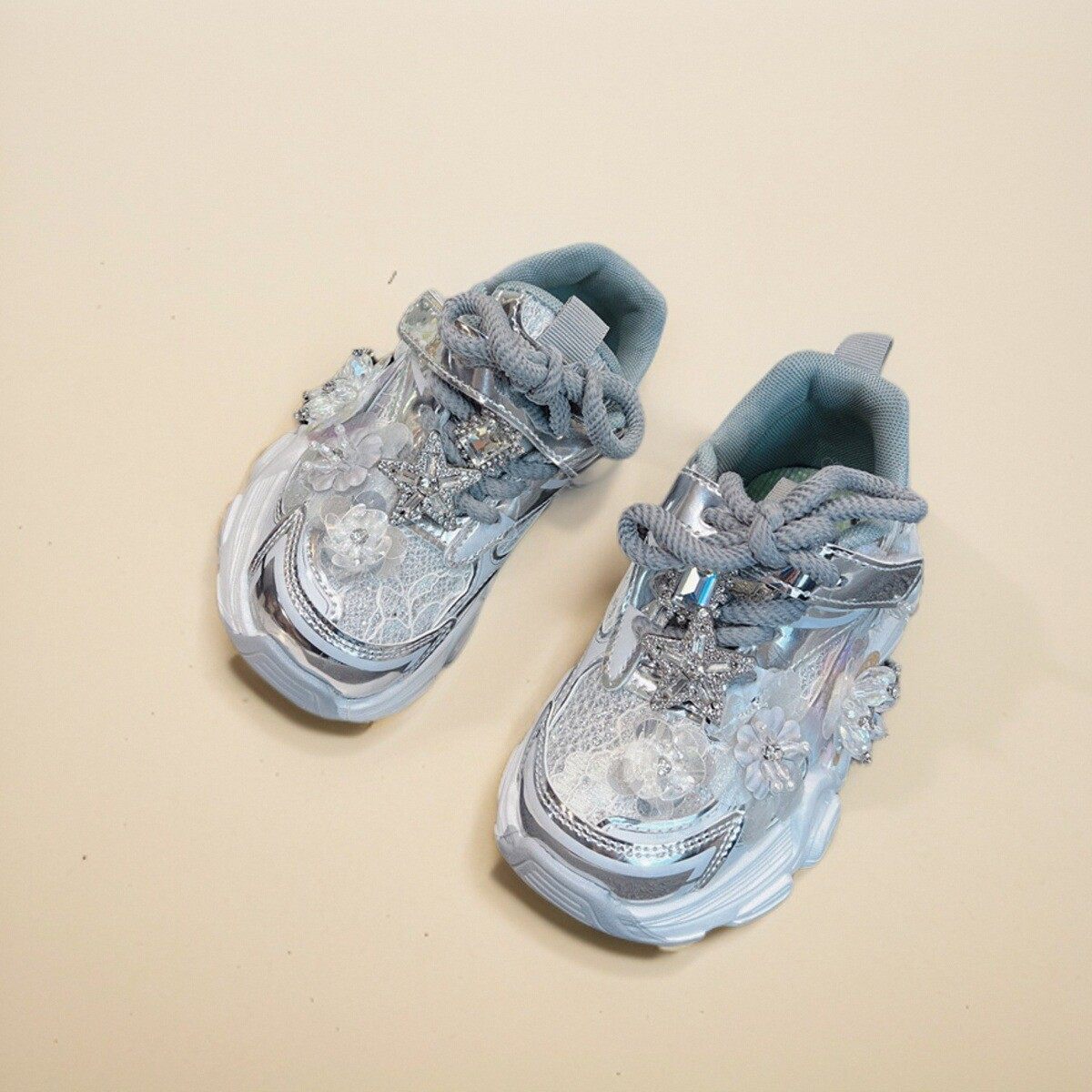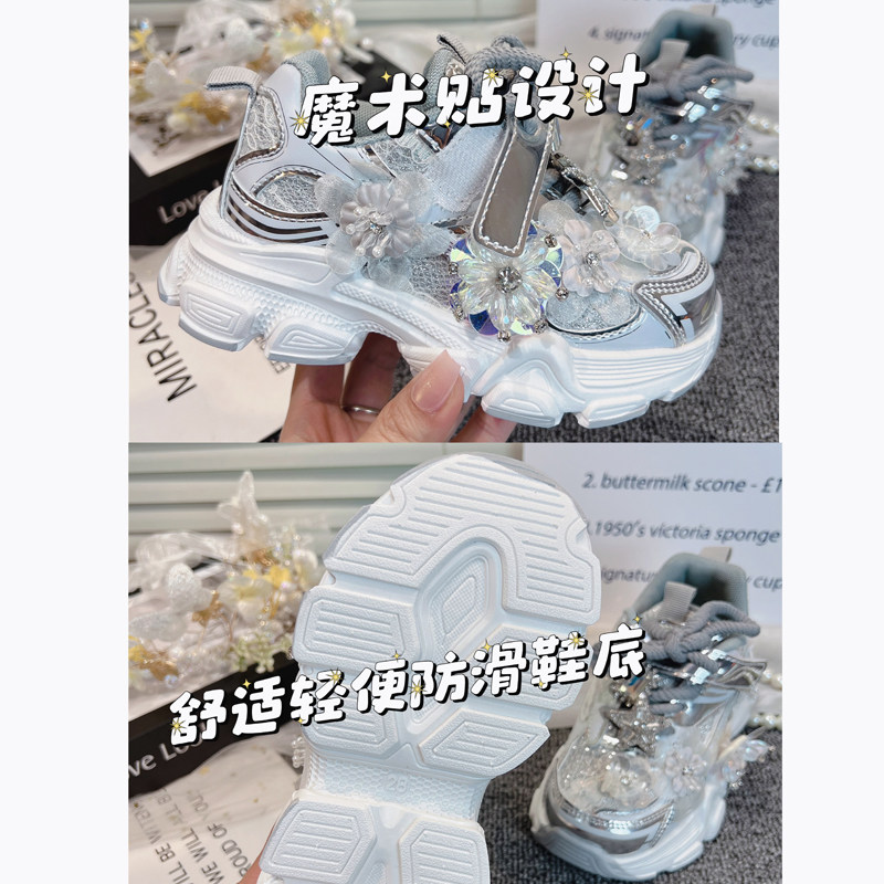 女童鞋2026新款春款银色运动鞋儿童炸街老爹鞋春秋款女孩网鞋透气