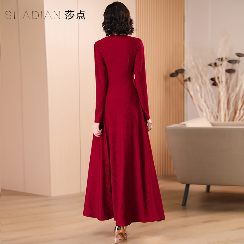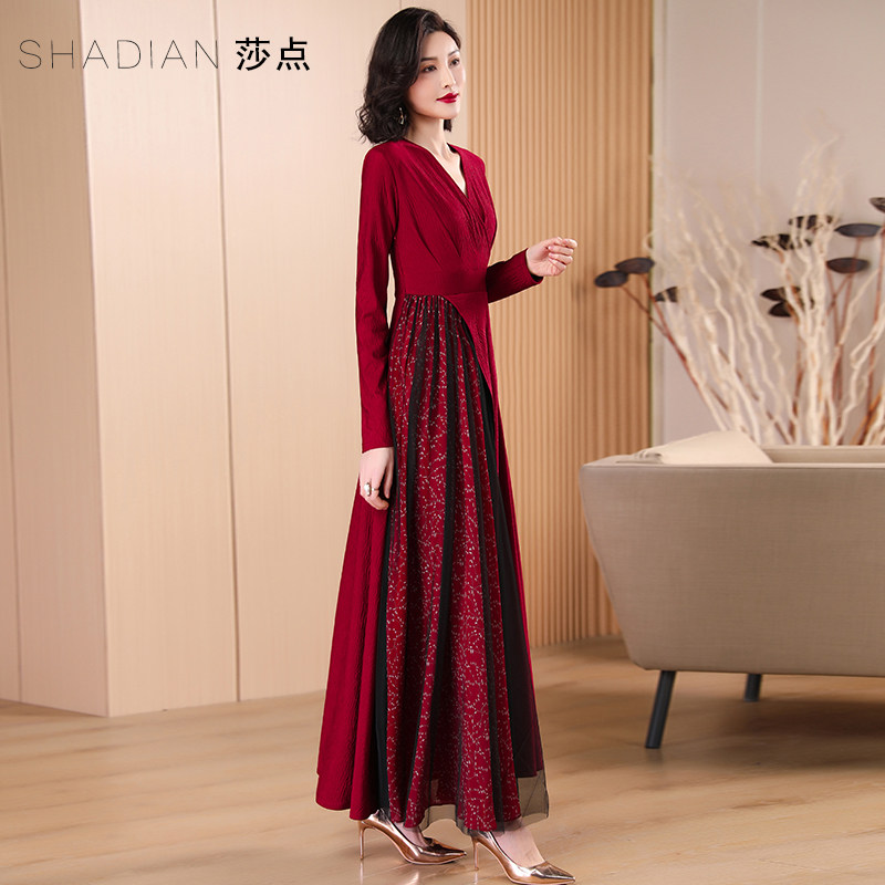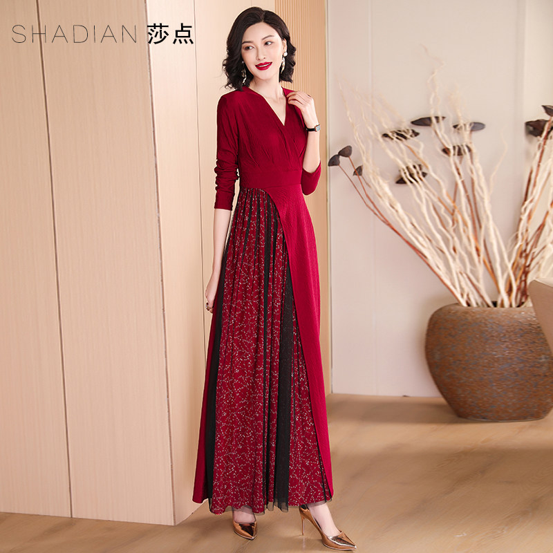 碎花连衣裙2026年春秋红色大摆裙长袖长裙长款到脚踝喜婆婆婚宴装