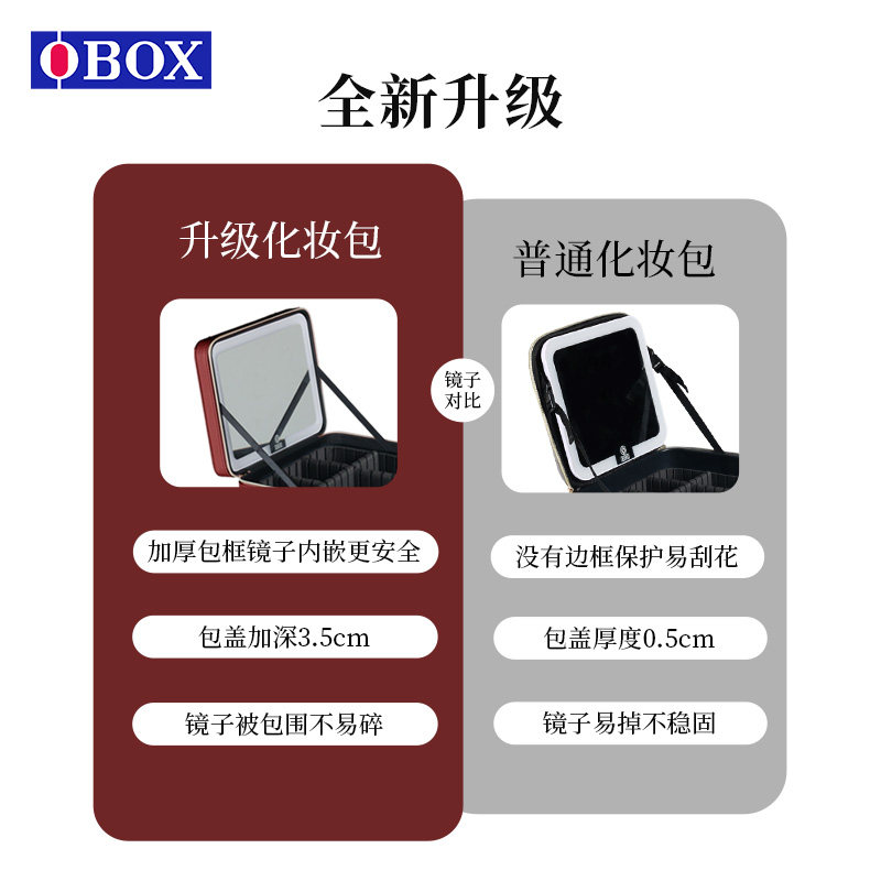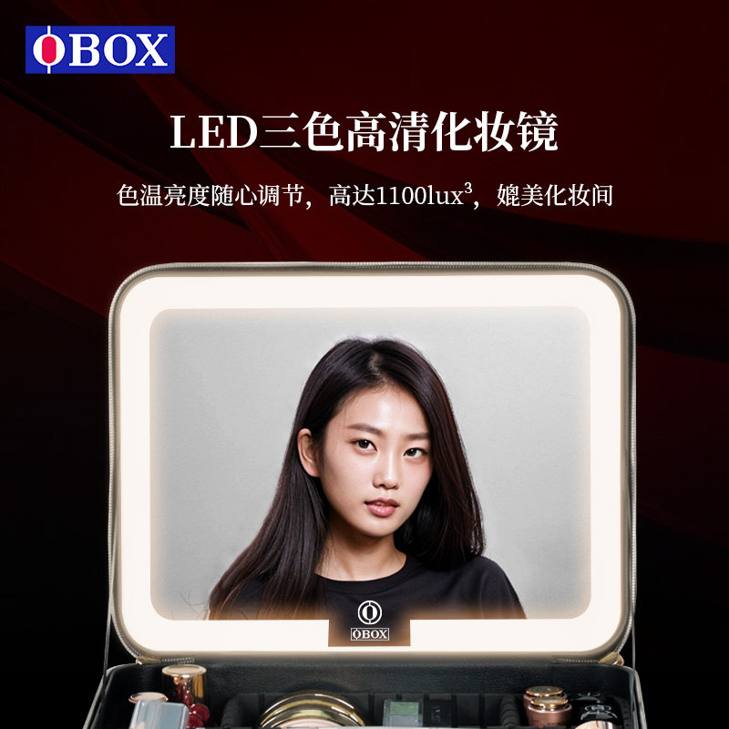 OBOX化妆包LED带灯带镜子美妆工具化妆品收纳旅行便携出行大容量