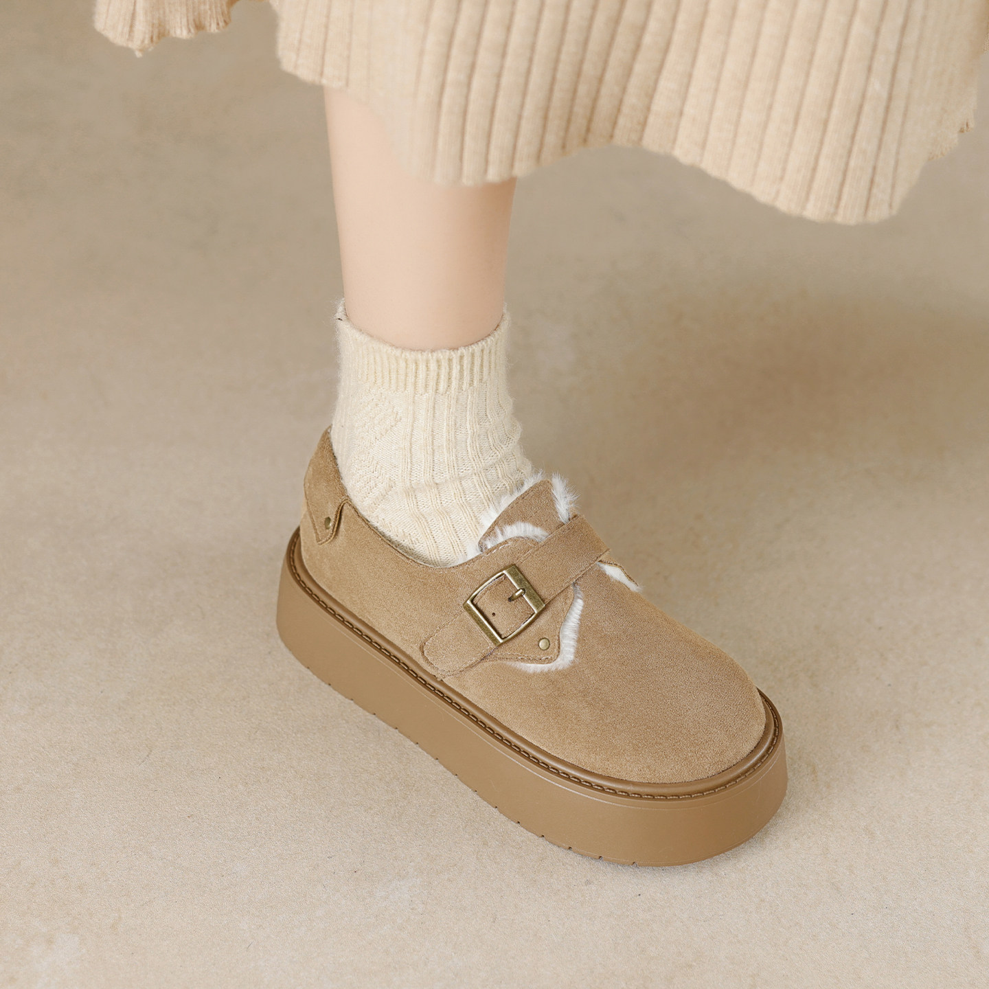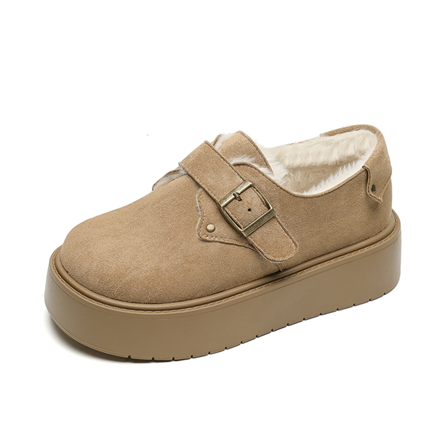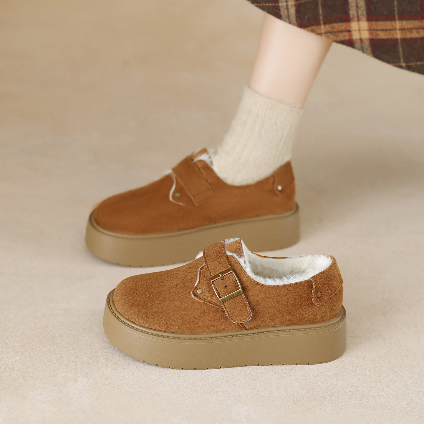真皮~厚底勃肯鞋女冬季加绒超火棉鞋一脚蹬雪地靴大码女鞋41到43