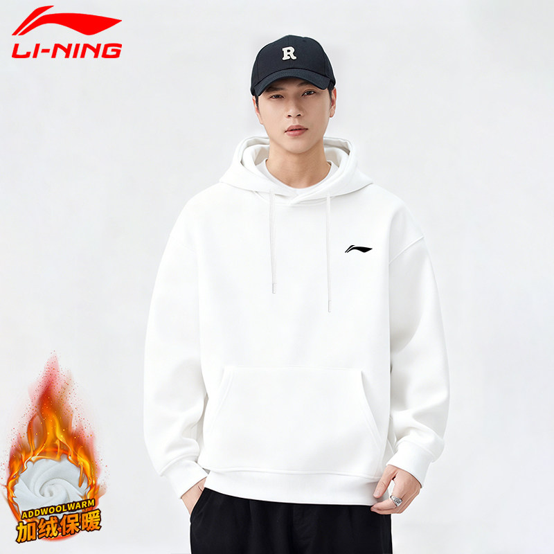 李宁卫衣男士秋冬新款加绒连帽上衣青少年加厚保暖休闲运动男外套