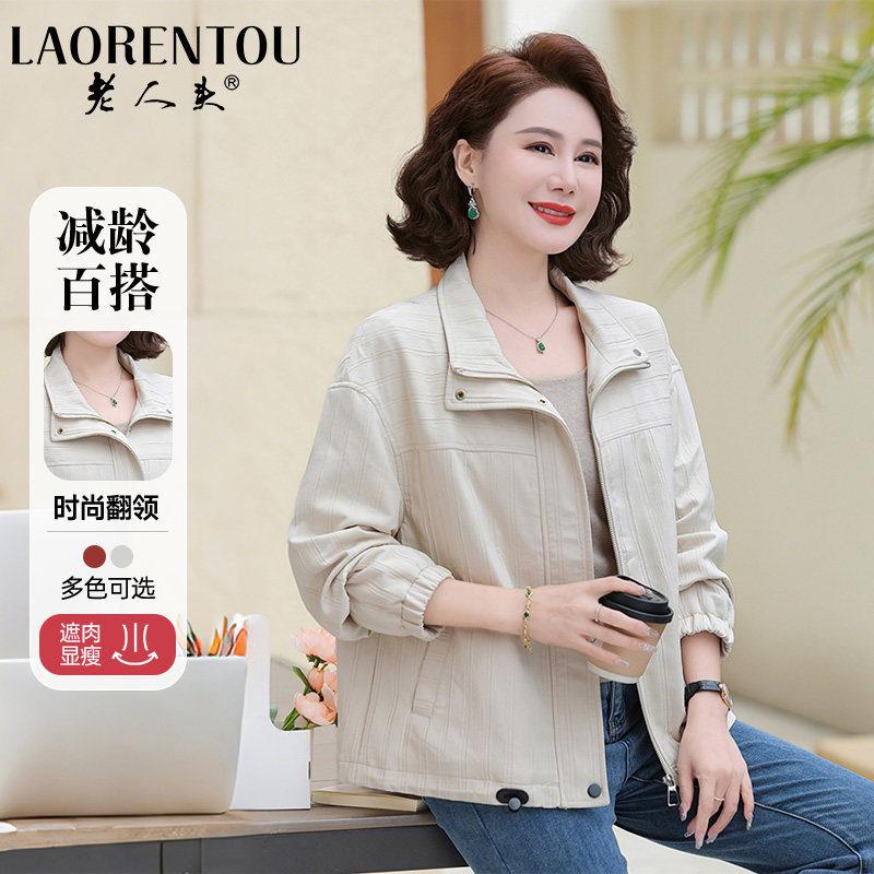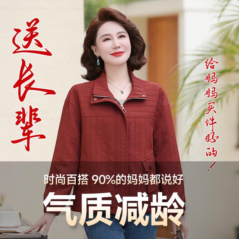 老人头洋气妈妈春装夹克外套2025新款中老年女装时尚百搭短款上衣