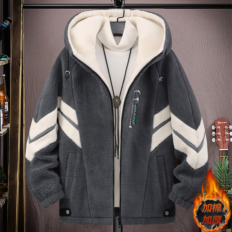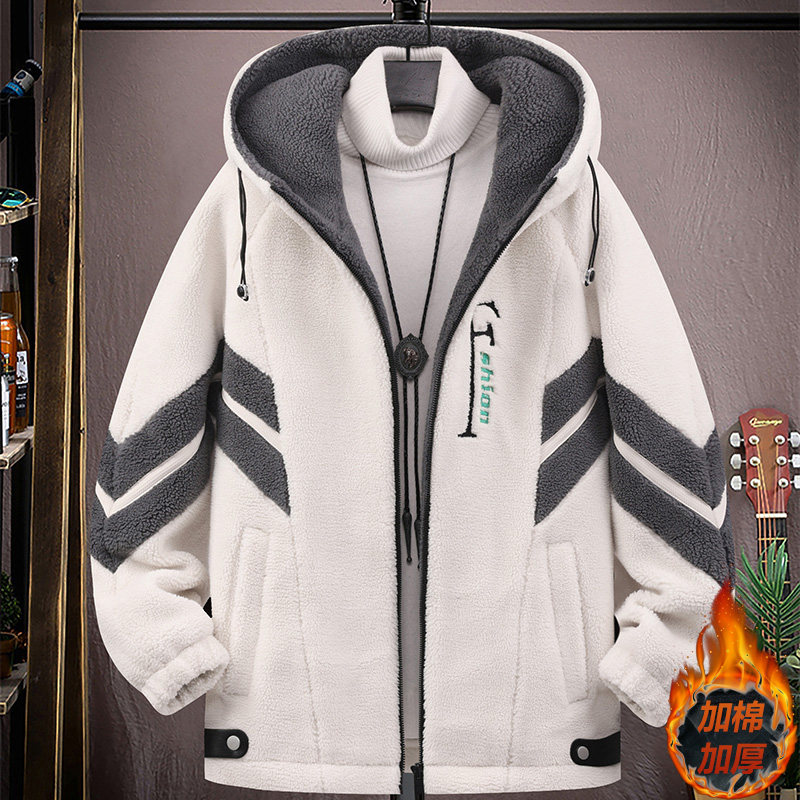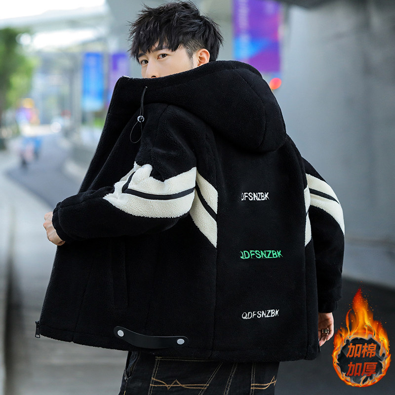 青少年羽绒服男孩潮流初中学生颗粒绒加厚棉衣大童冬装羊羔毛外套