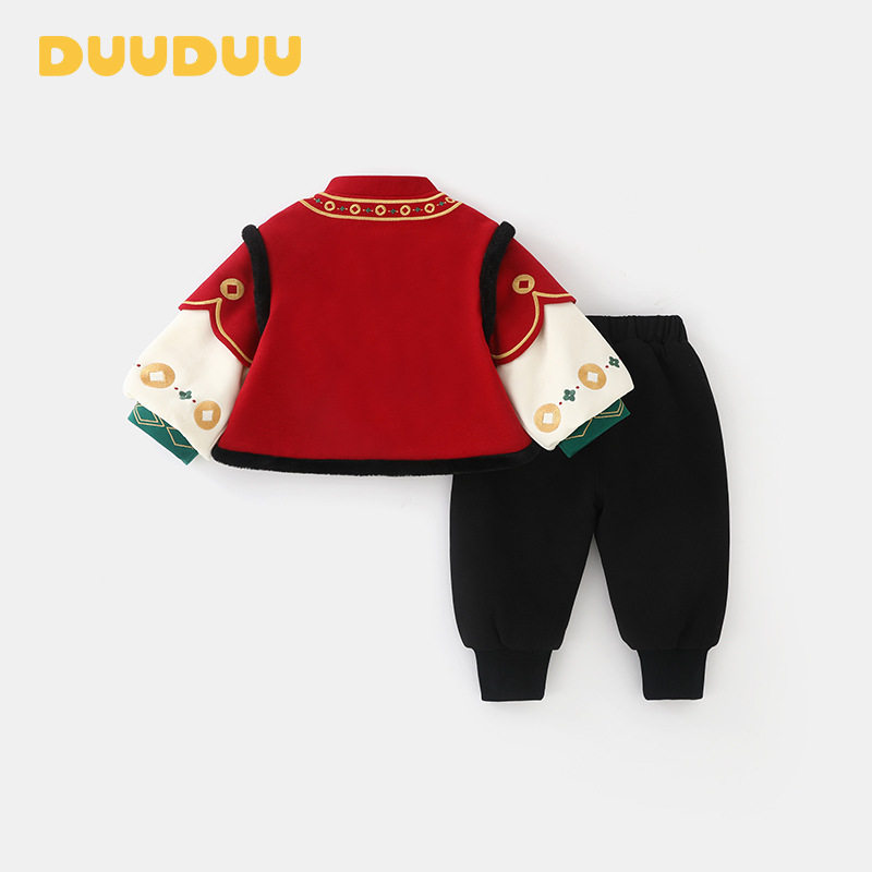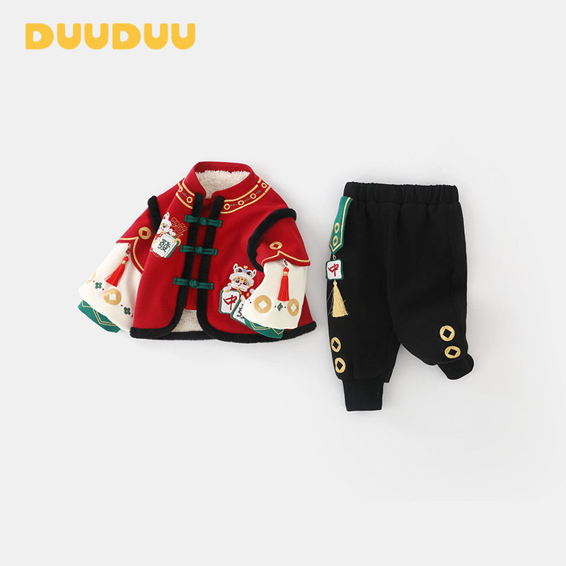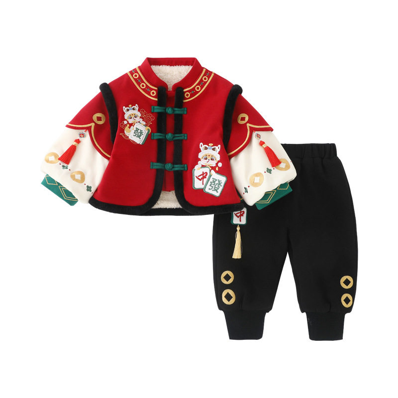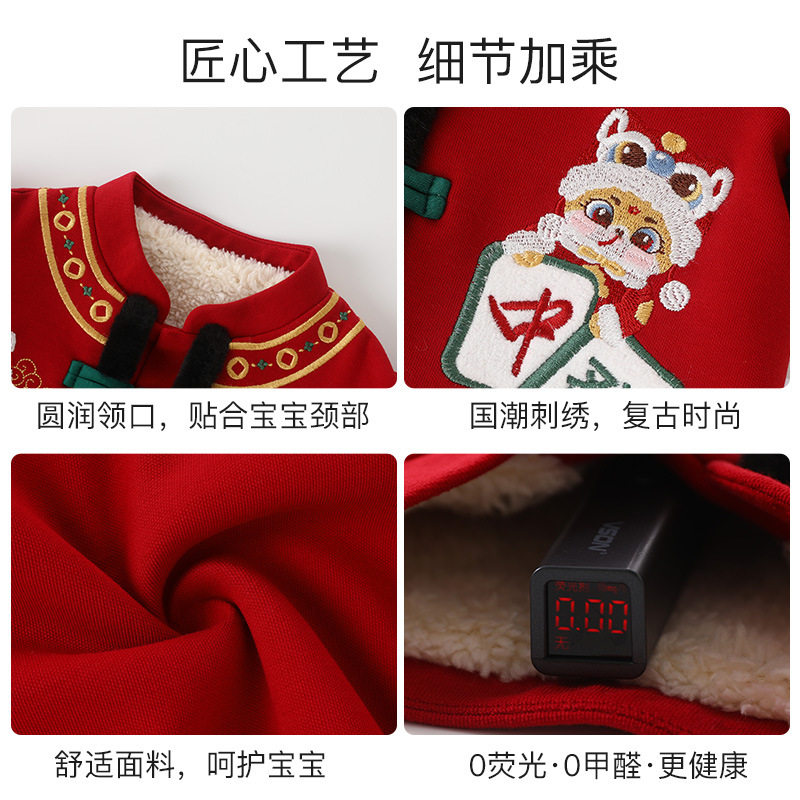 男童马年套装夹棉保暖女宝周岁礼服中国风拜年服婴幼儿新年衣服潮