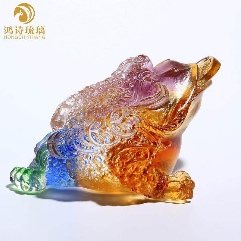 琉璃金蟾水晶汽车工作台摆件车内小饰品创意个性潮中控台蟾蜍茶玩