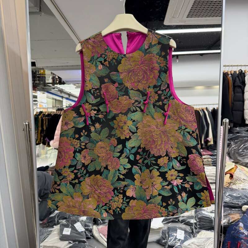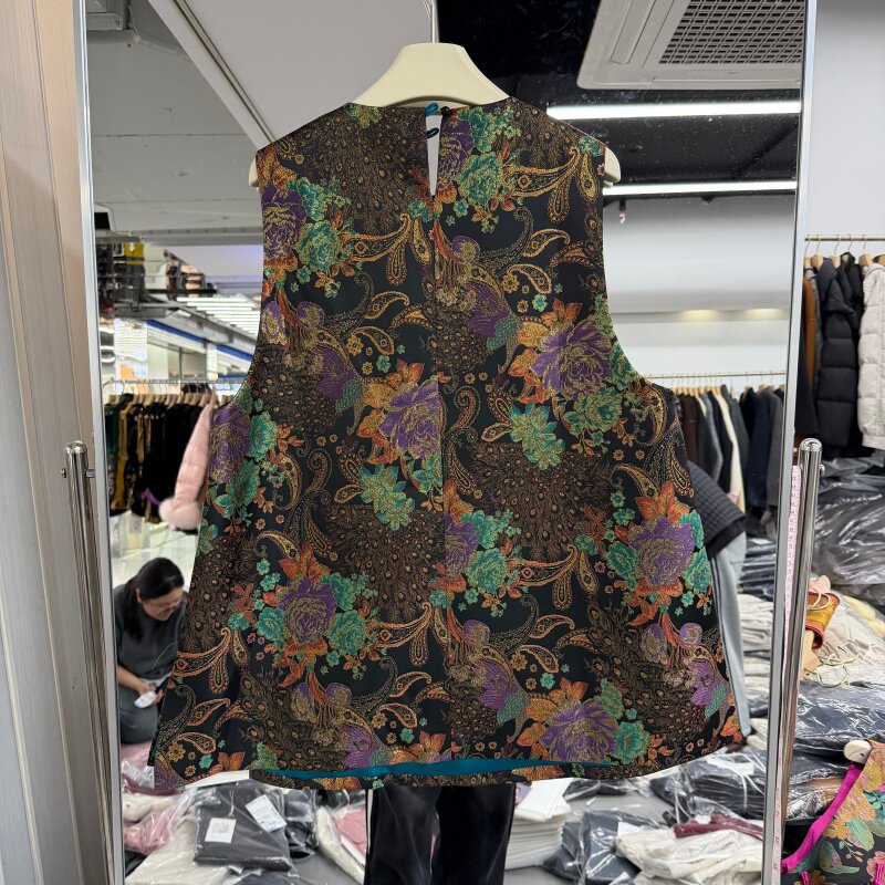 2026年春装新款流行女装新中式马夹背心连衣裙缎面花色提花中长款