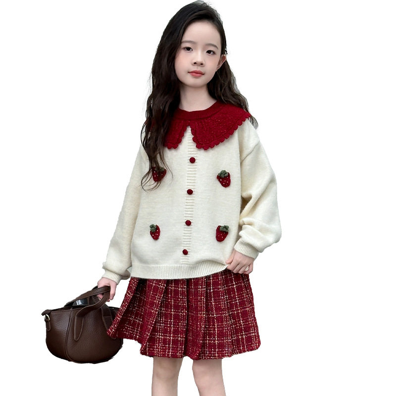 女童小香风套装秋冬2025新款女孩红色连衣裙冬装儿童裙子新年衣服