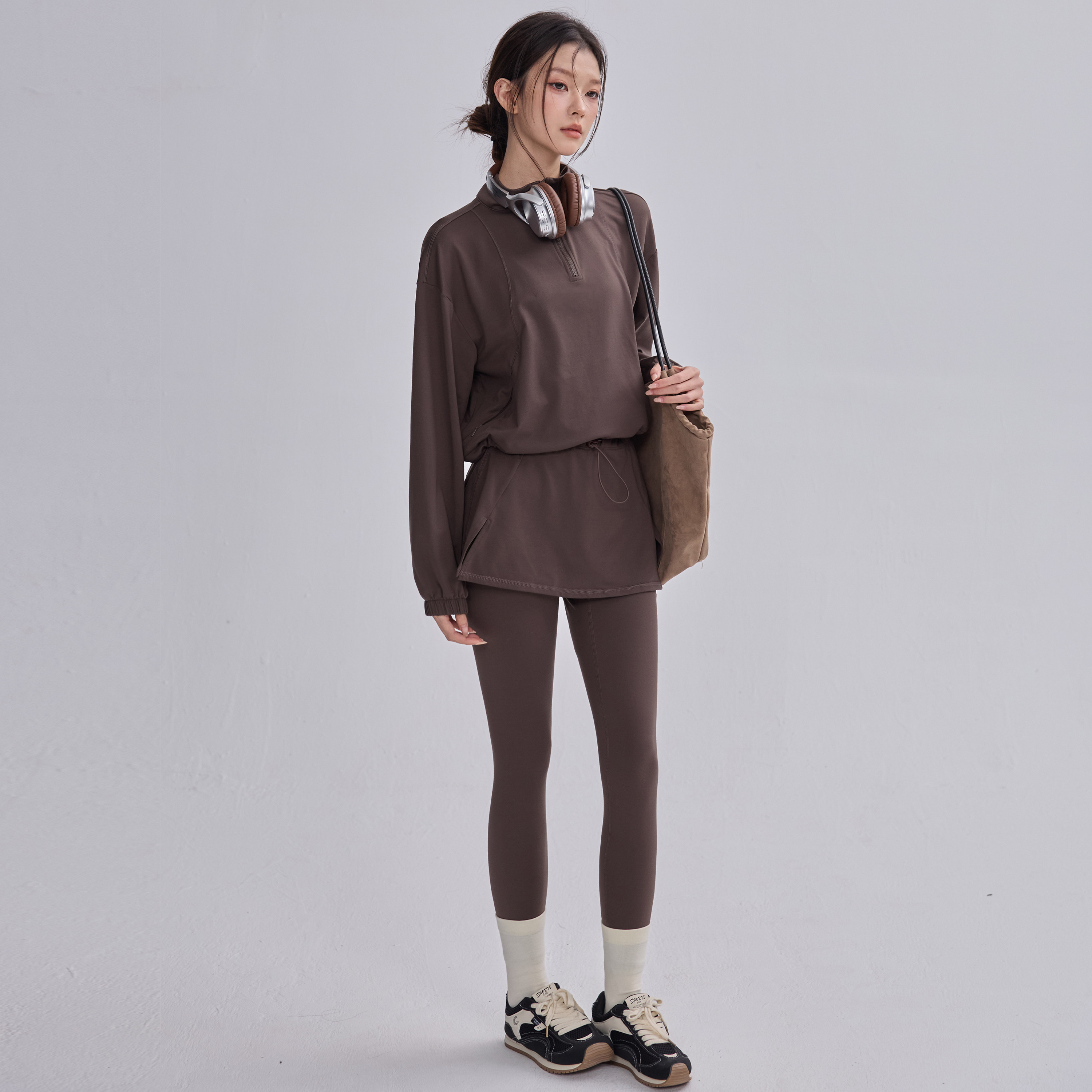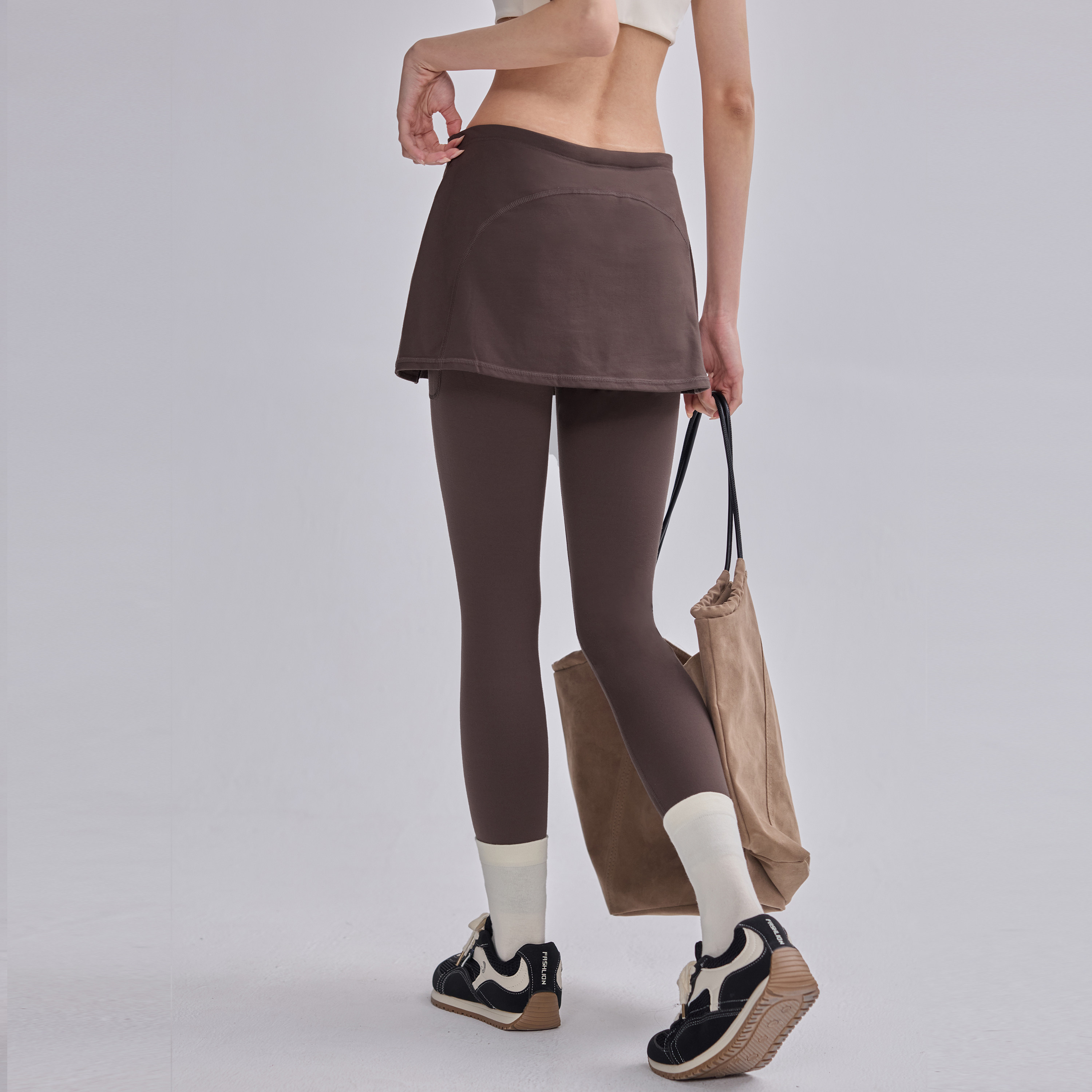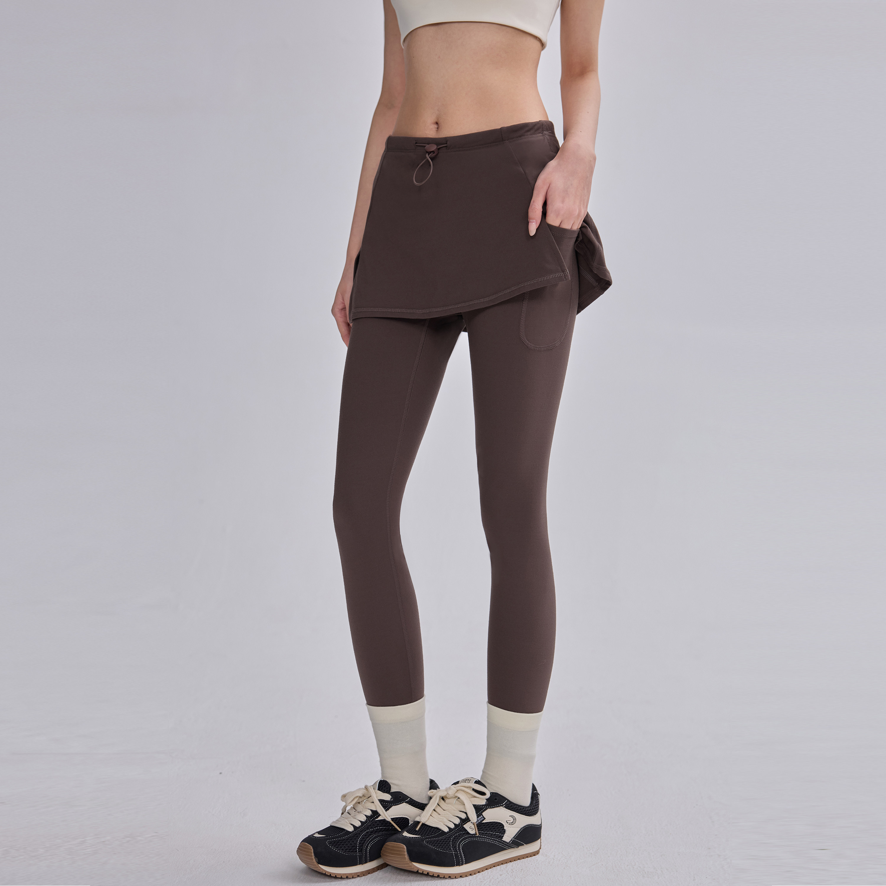 假两件瑜伽裙裤女秋冬薄绒跑步运动紧身长裤遮臀健身普拉提训练裤