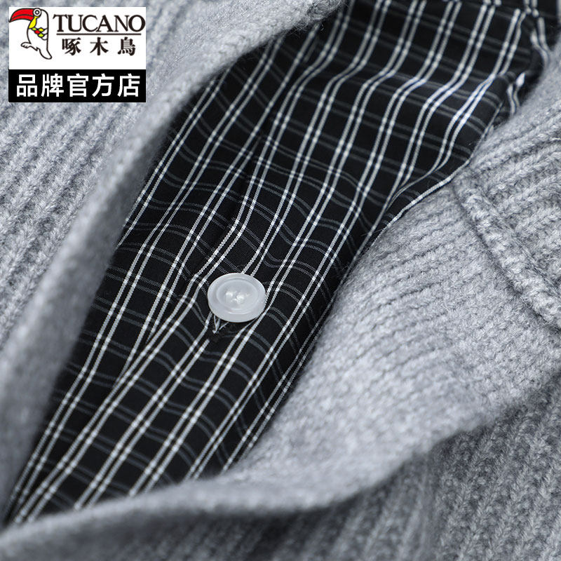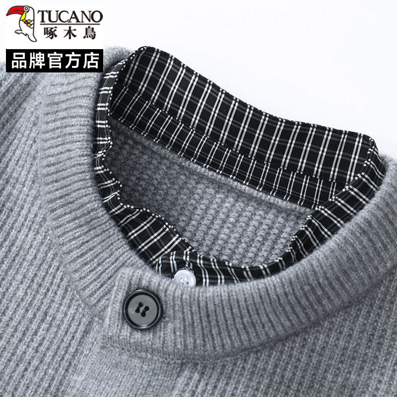 啄木鸟红色假两件针织开衫男秋冬圆领纽扣本命年毛衣外套高级感潮