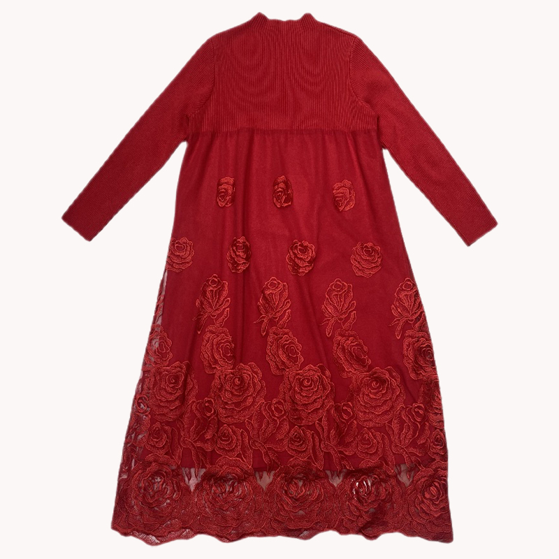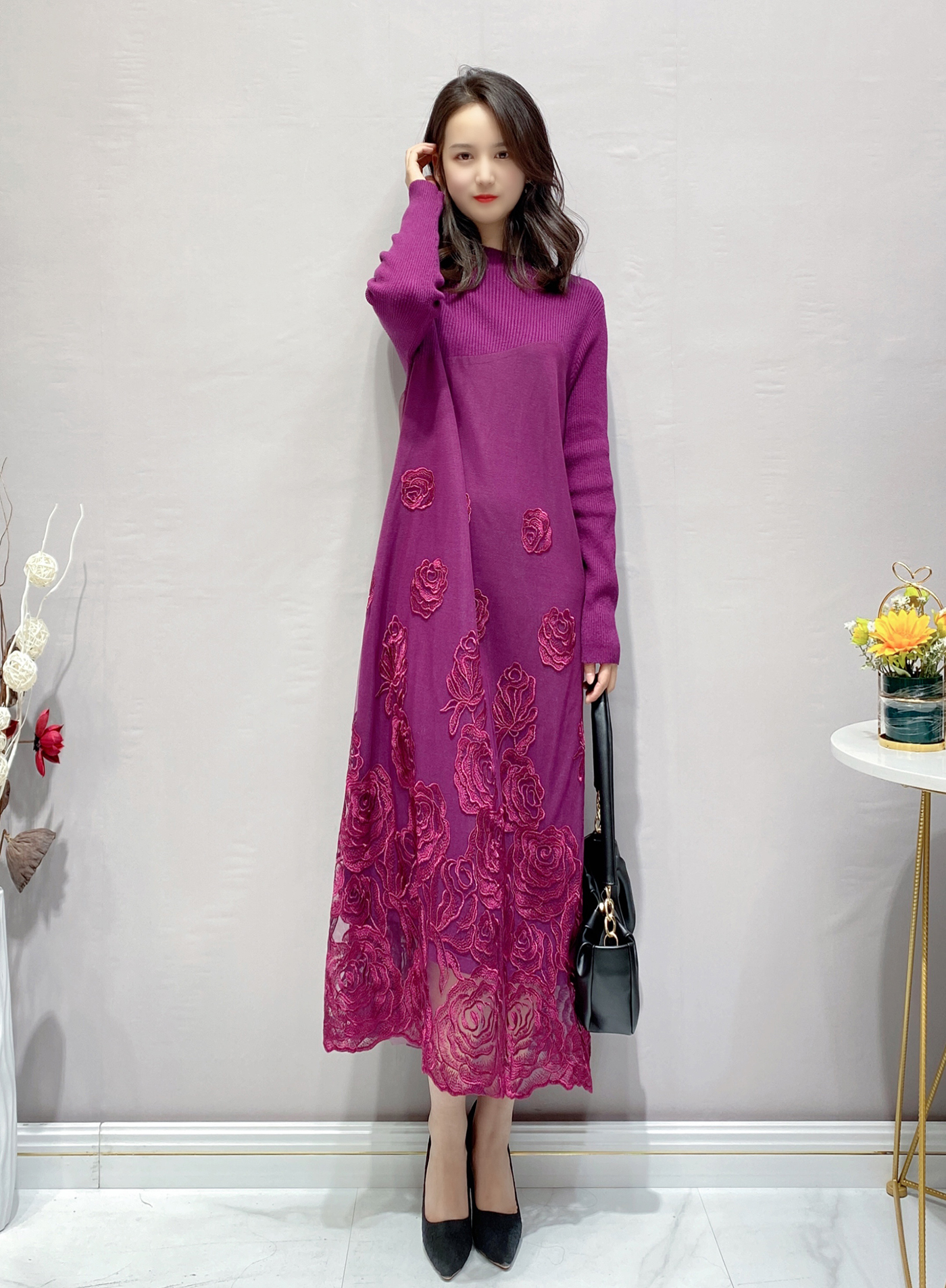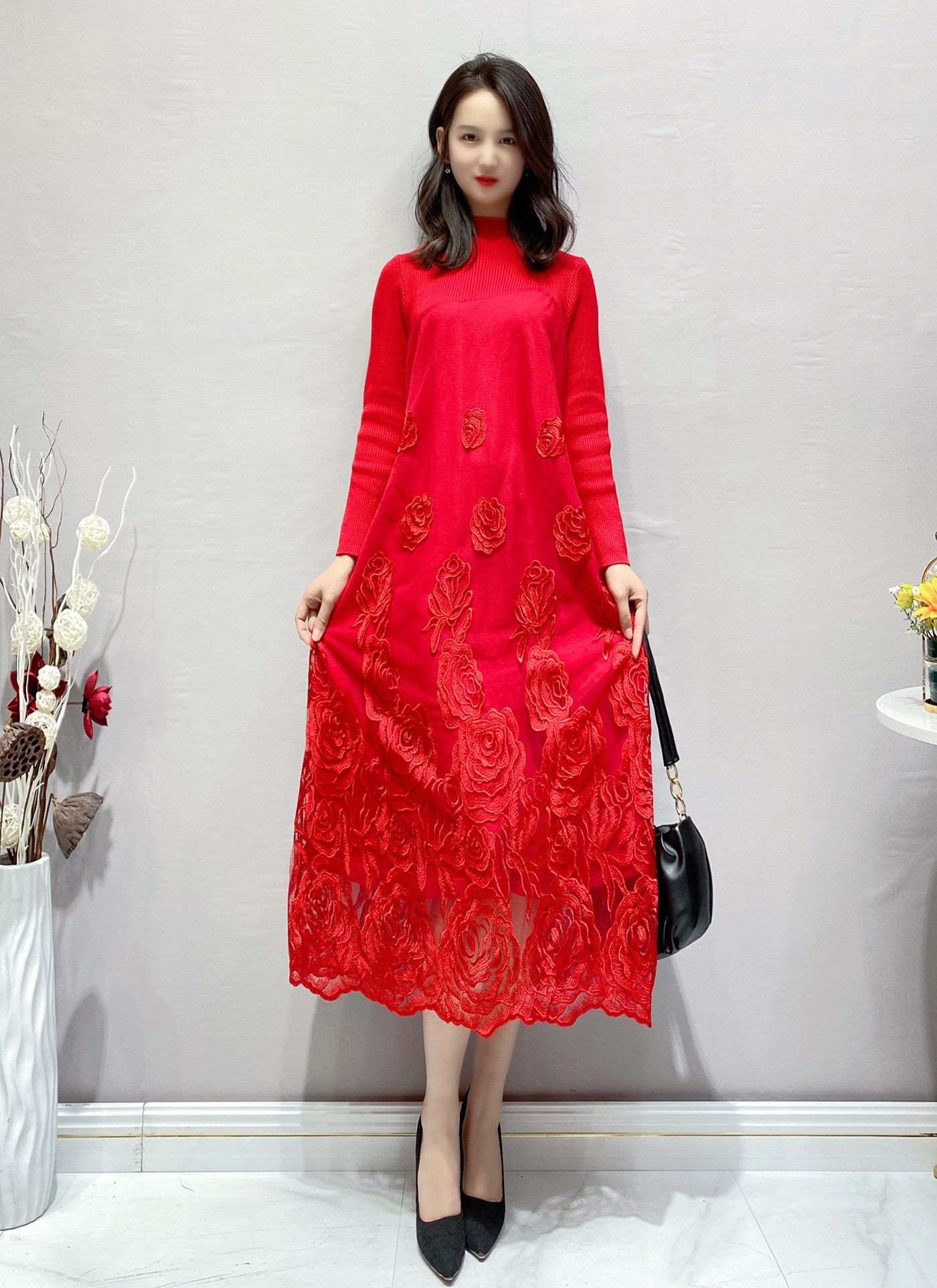 羊毛针织连衣裙女冬季2024新款欧洲站宽松洋气打底刺绣长裙配大衣