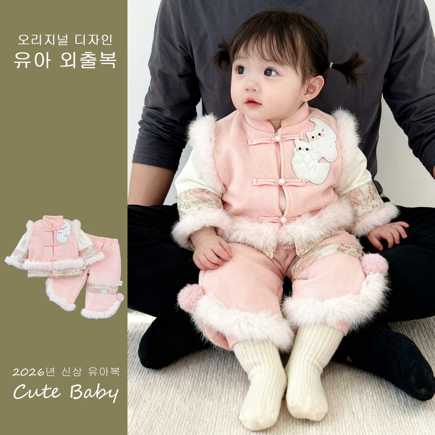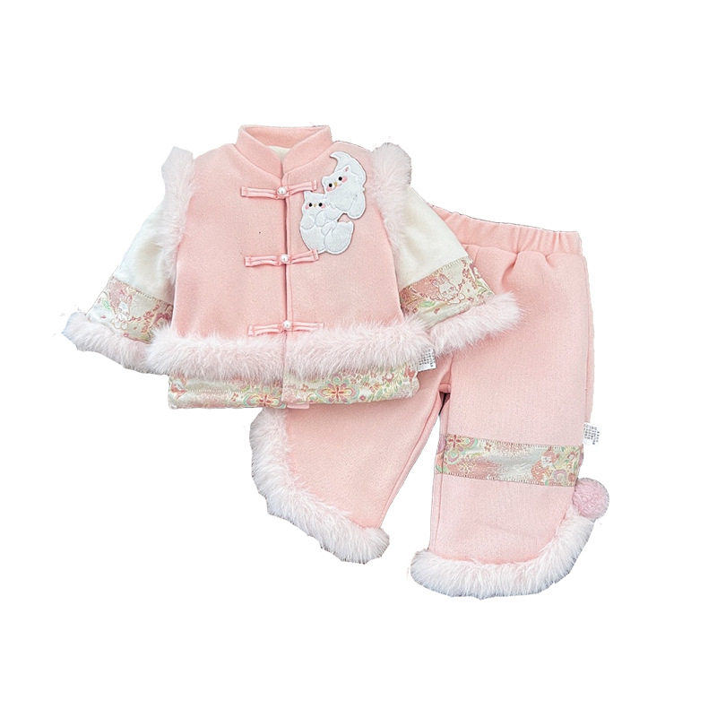 女宝宝套装冬季新款儿童加绒汉服女童小兔拜子年服冬装加厚两件套