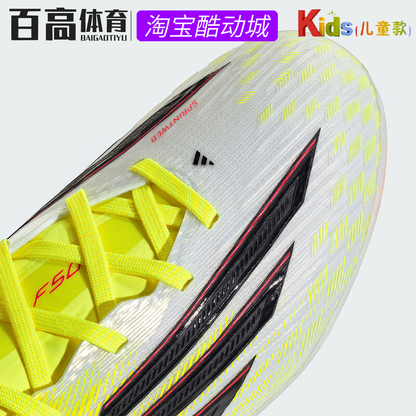 Adidas阿迪F50天然草FG长钉低帮比赛儿童高端专业足球鞋JR8965