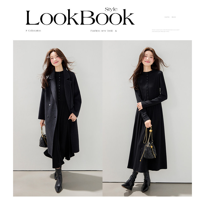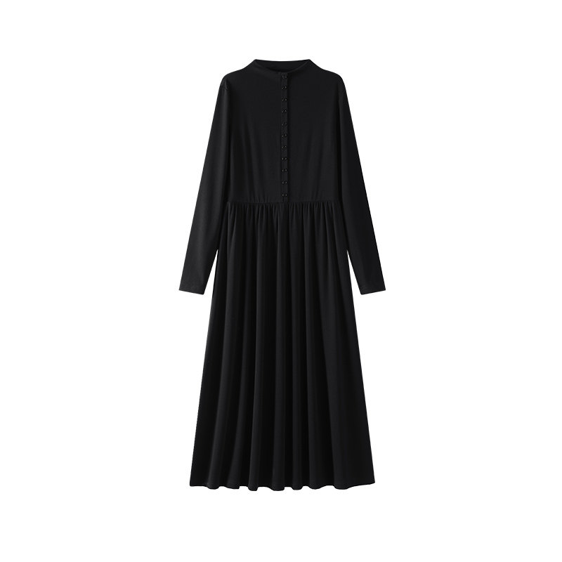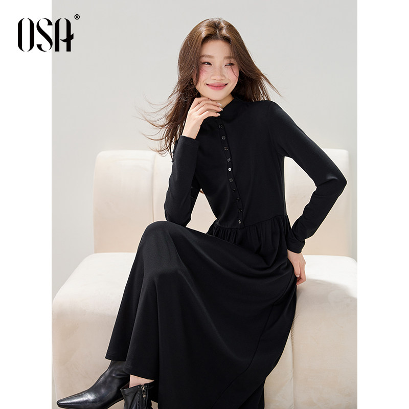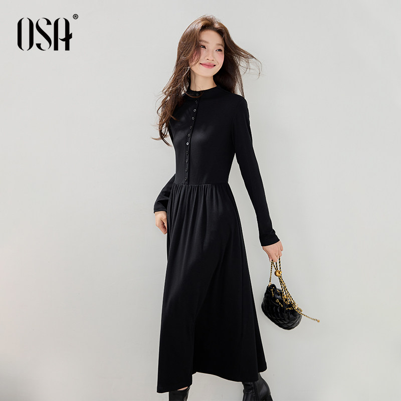 OSA欧莎法式长袖黑色连衣裙女2025年冬季新款气质高级感内搭长裙