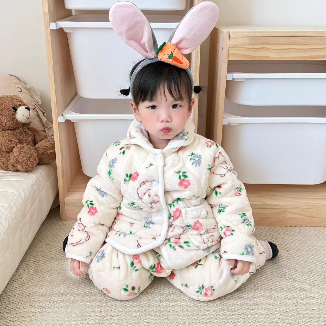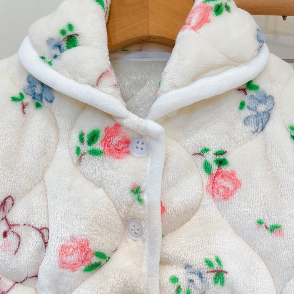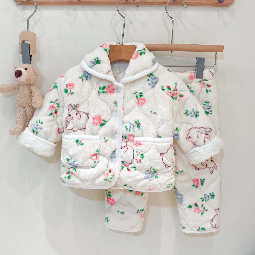 女童三层加厚家居服套装2025新款洋气保暖睡衣宝宝冬季加绒两件套