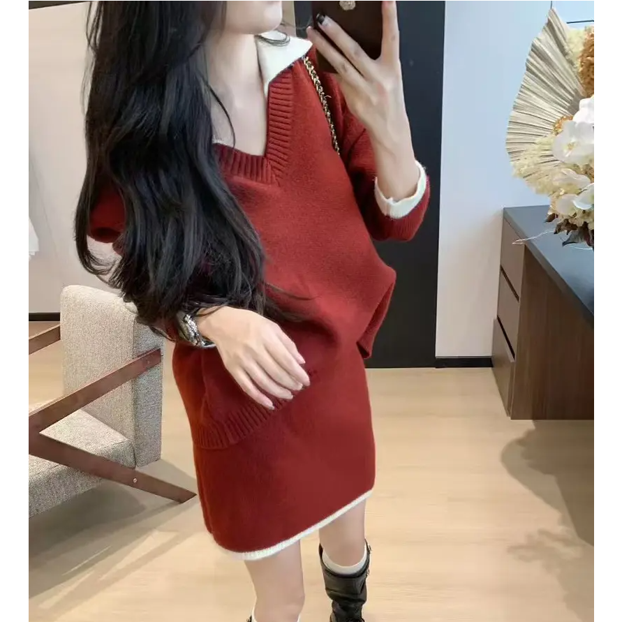 针织毛衣连衣裙子女秋冬季2026新款巨好看穿搭一整套装内搭小个子