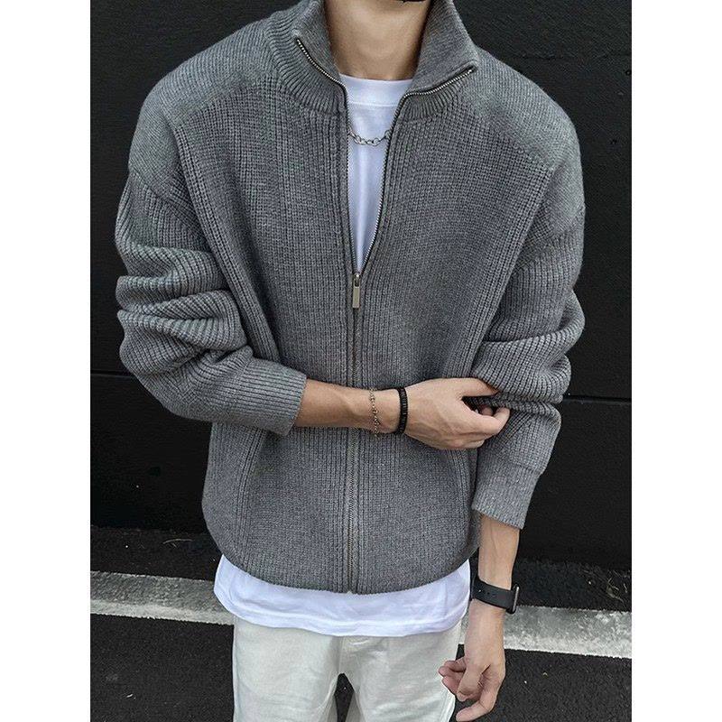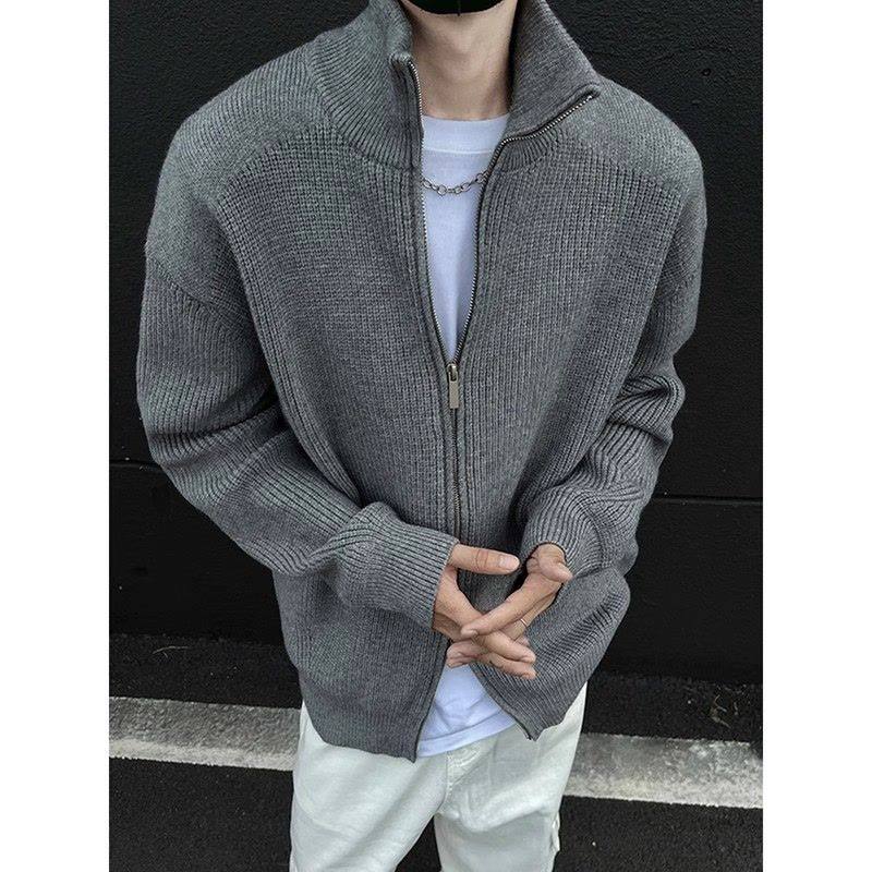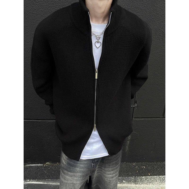 黑色双拉链开衫毛衣男款春秋冬季加厚半高领外套高级感美式针织衫