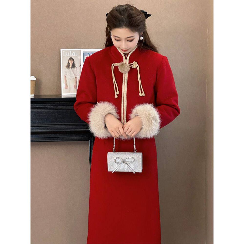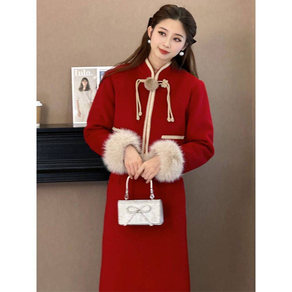 新中式国风女装2025新款秋冬装搭配一整套红色圣诞小香风套装