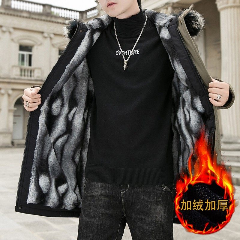 棉衣男冬季2025新款潮流中长款加绒加厚派克服男款外套男冬装棉袄