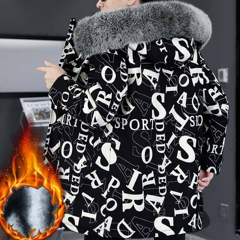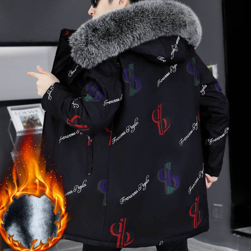 青少年大码中长款棉衣男孩外套初中学生青年冬装加绒加厚棉袄服潮