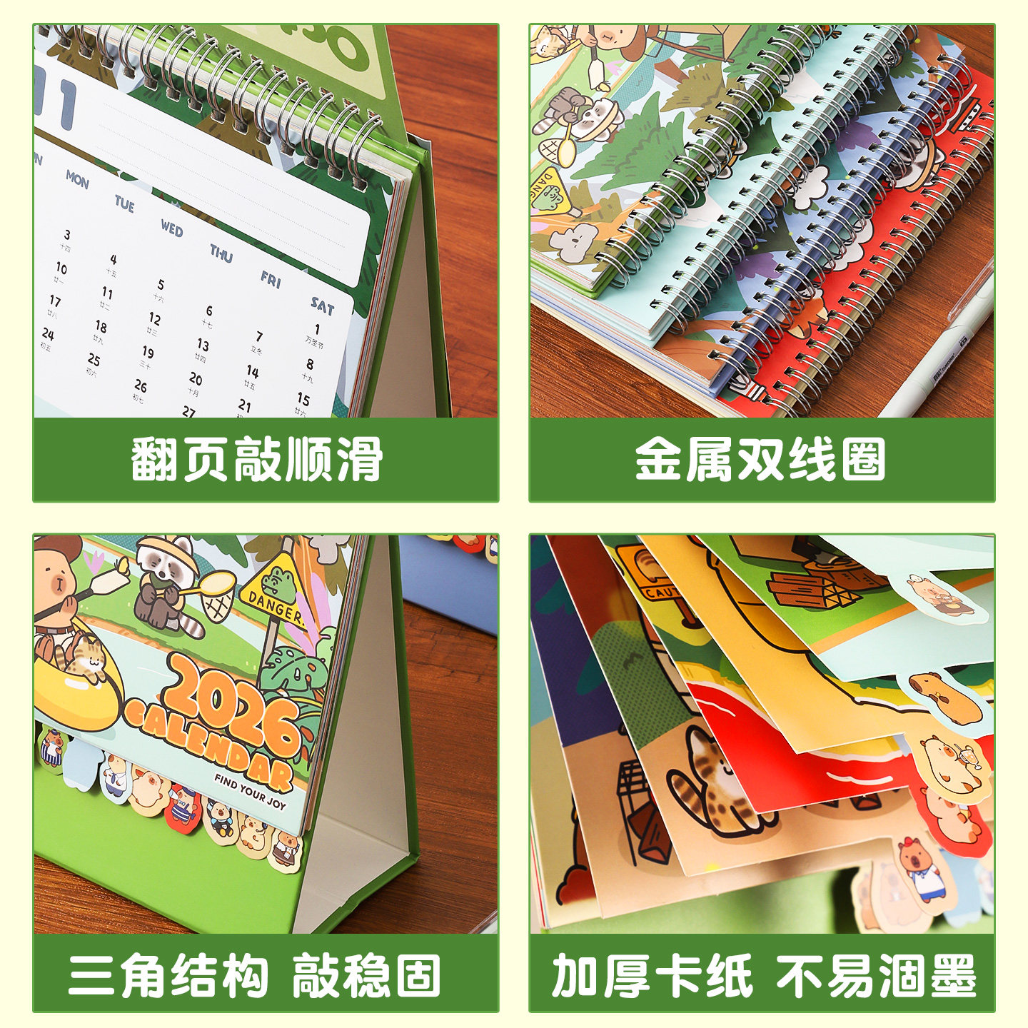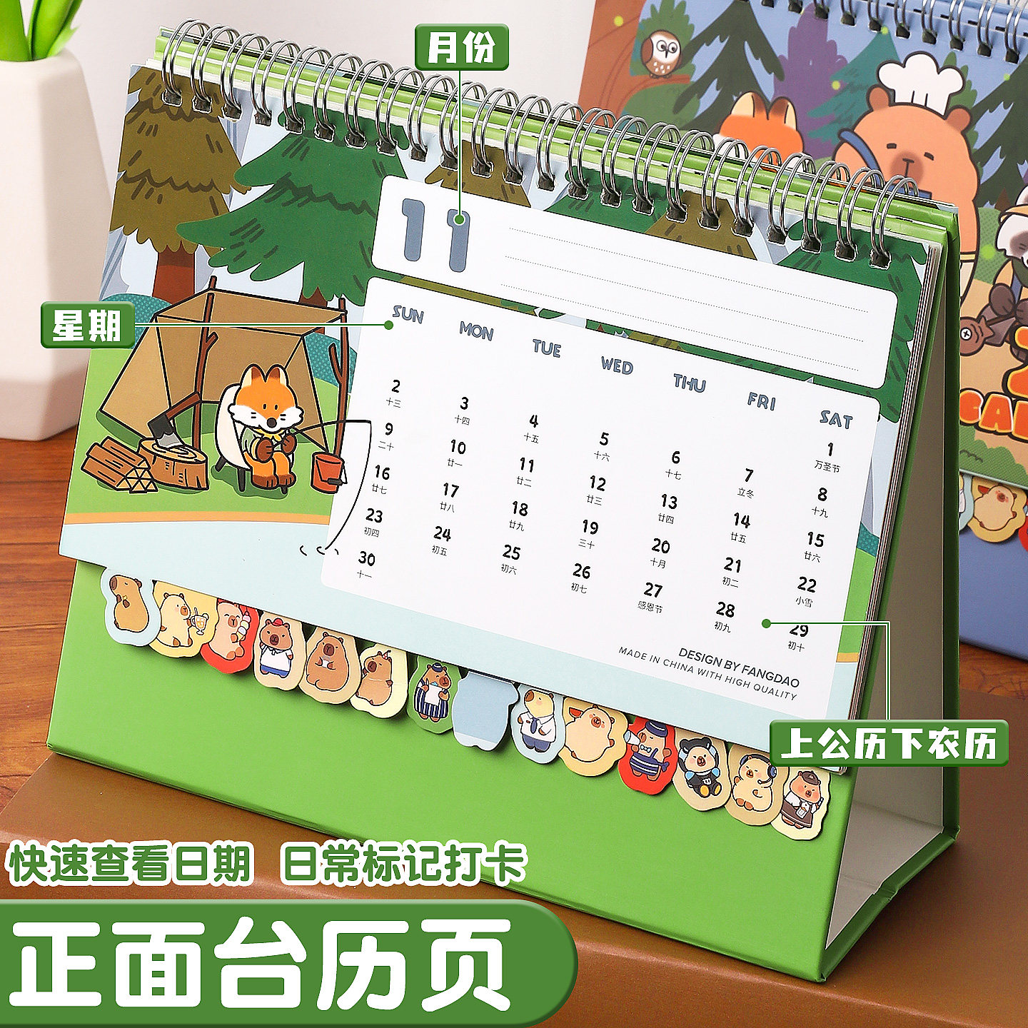 台历2026年新款卡皮巴拉日历本马年创意桌面摆件商务办公打卡计划本中高考考研倒计时记事本备忘录月历万年历