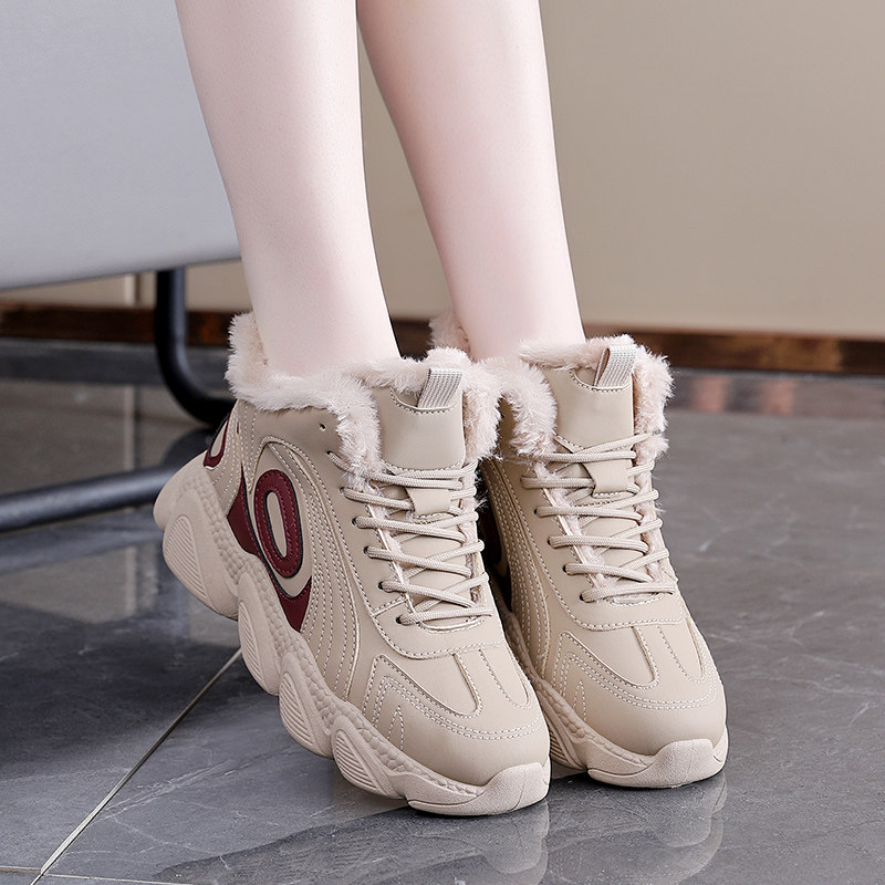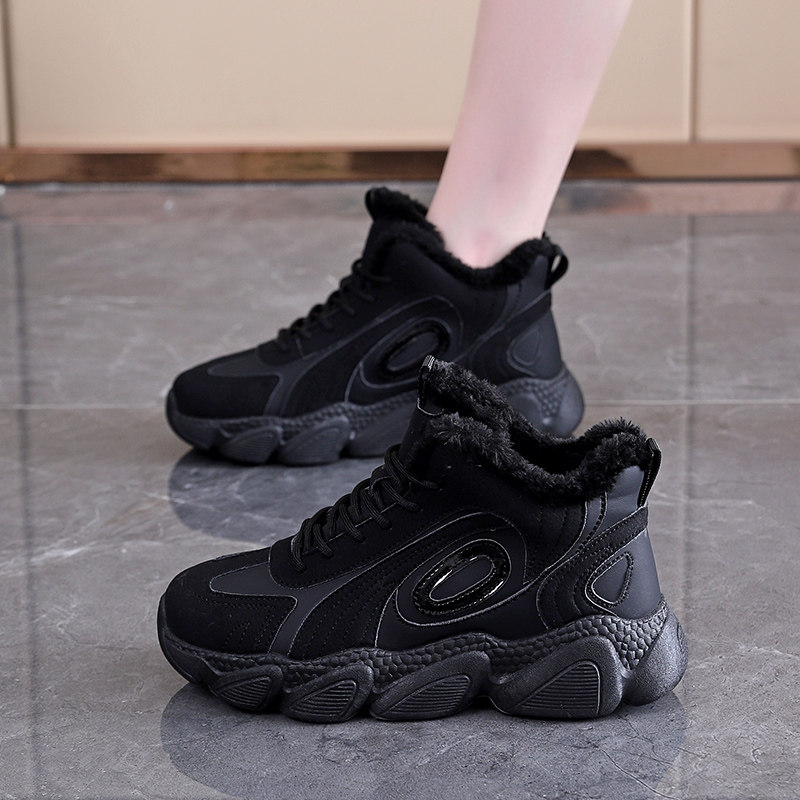 踩屎感厚底增高老爹鞋女款冬季加绒保暖防滑高帮大棉鞋软底休闲鞋