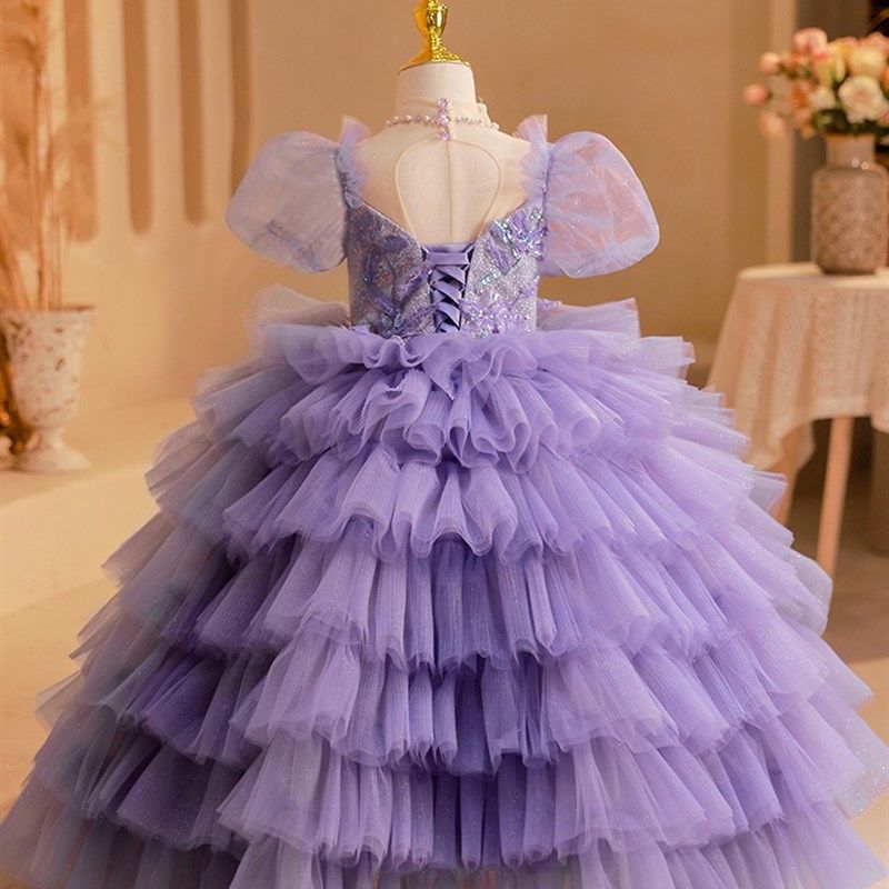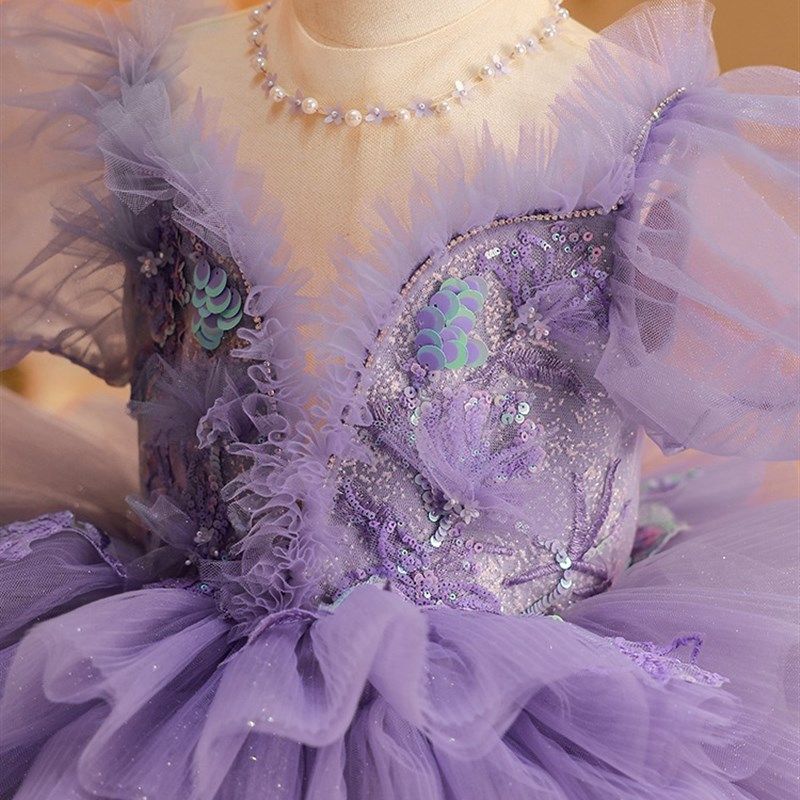 女童礼服轻奢小众高端宴会钢琴比赛演出服儿童生日连衣裙紫公主裙