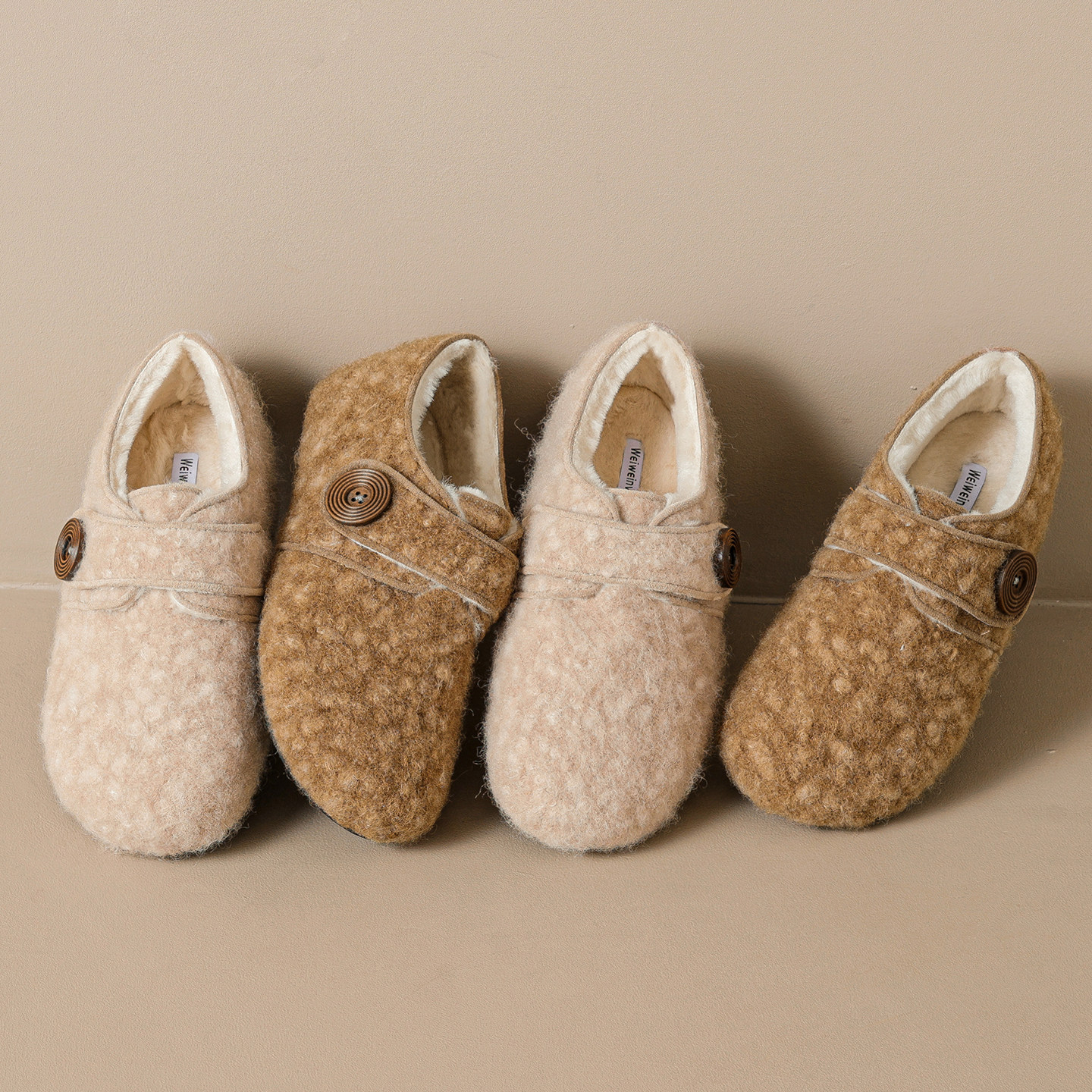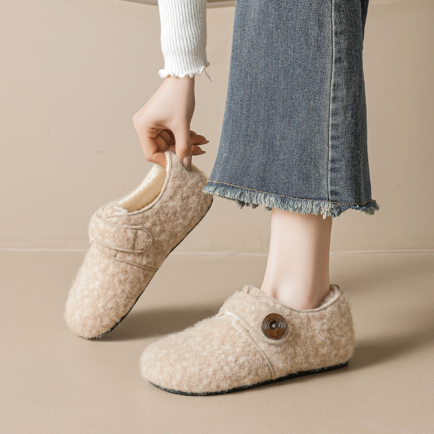 米霏~加绒勃肯鞋女冬季厚底内增高一脚蹬毛绒保暖毛毛鞋大码女鞋