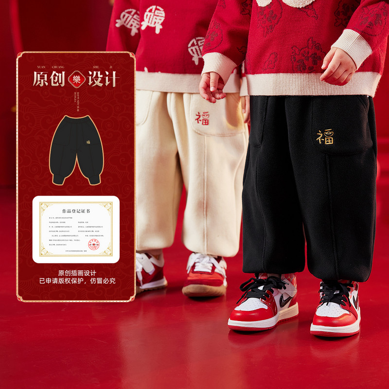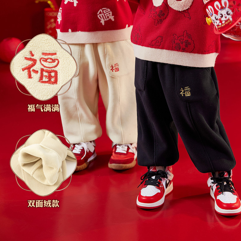 儿童运动裤男童拜年服冬装宝宝裤子童装小童休闲裤年服女卫裤