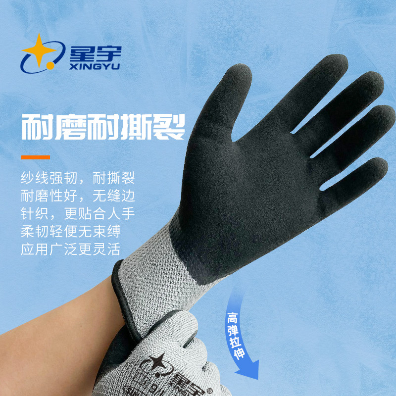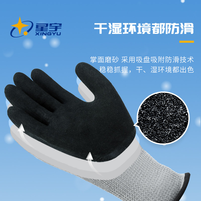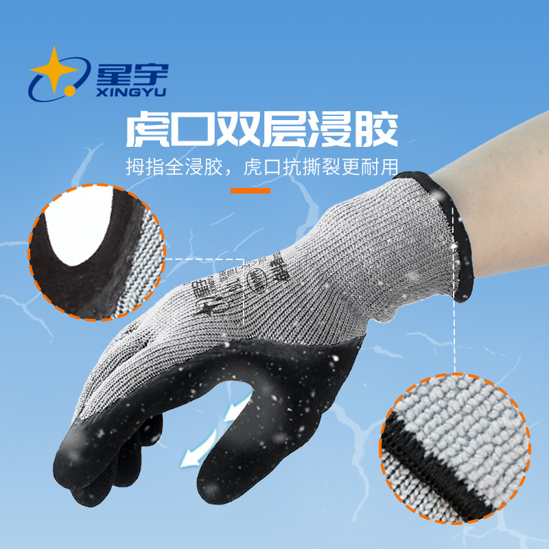 星宇加绒加厚劳保手套耐磨工作工地干活冬季冷库保暖防滑专用男